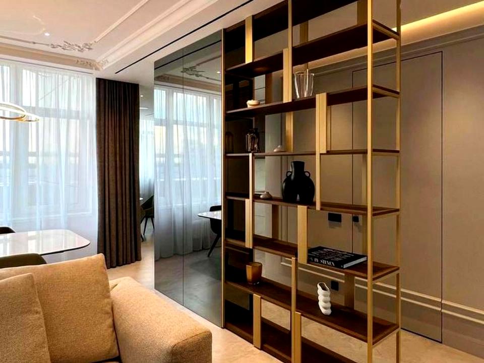 В квартирі багато красивих тонованих дзеркал та скла, які збільшують простір.