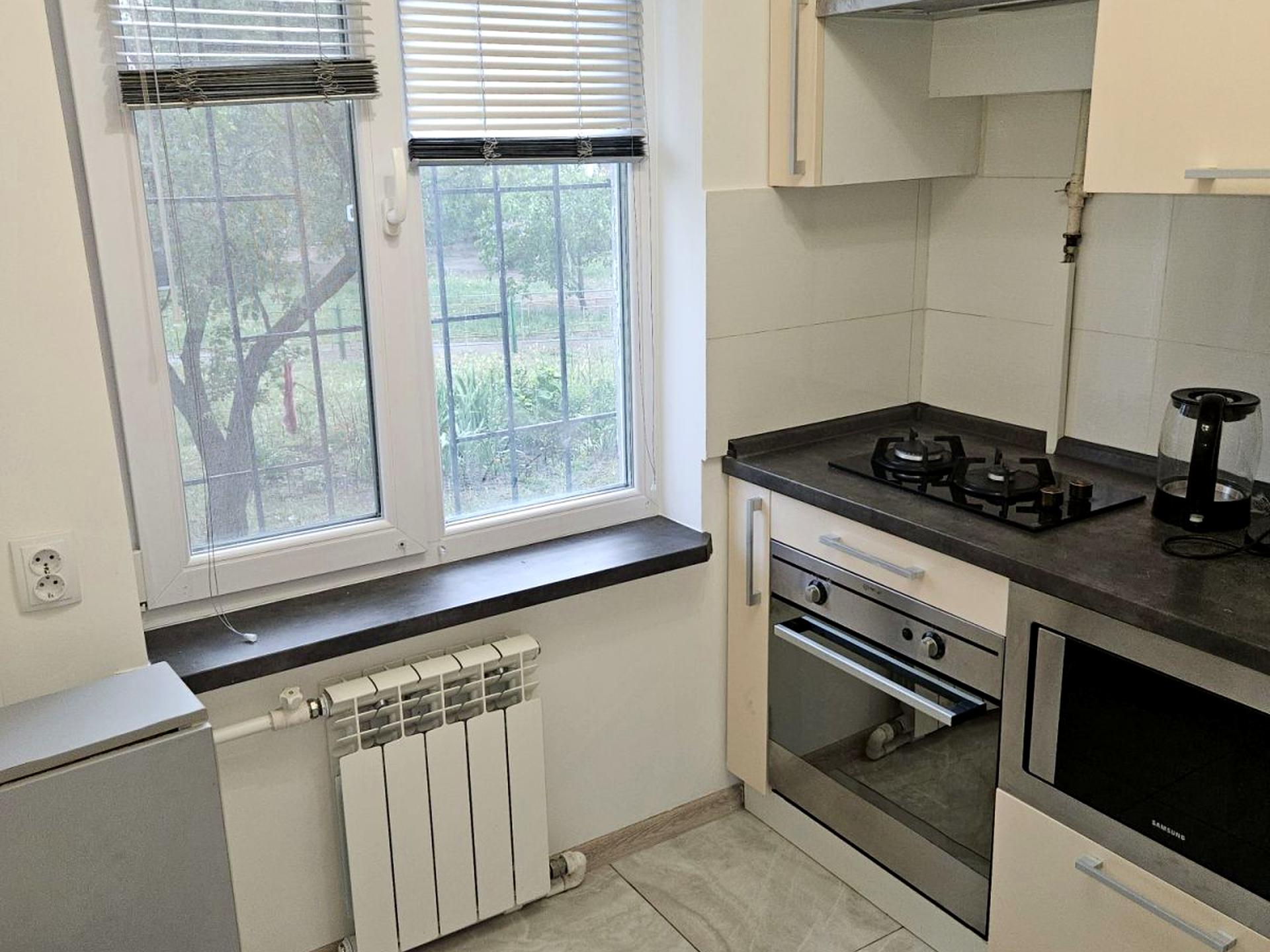 Оренда 2-кімнатної квартири на Оболоні за адресою Озерна 20. Площа квартири становить близько 50 квадратних метрів, розташована на першому поверсі, тому не треба підніматися, якщо виключити світло і ви не ніколи не застрягнете у ліфті. У квартирі дві окремі кімнати, кухня та об’єднаний санвузол. На балконі розташований повноцінний погреб, який може бути використаний як укриття або для зберігання додаткових речей. Також є окремий закритий коридор з сусідом із шафою купе та полицею для зберігання речей. У квартирі газ, тому ви не цілком залежите від світла. На вікнах встановлені решітки.