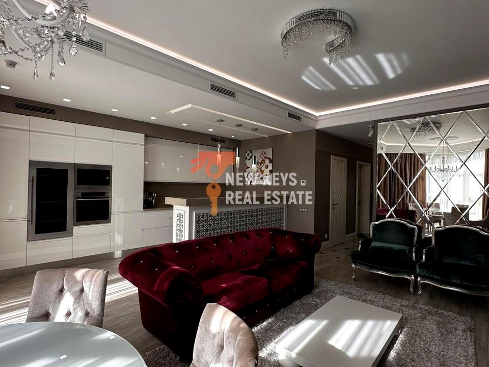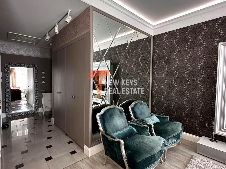 Інтер’єр виконаний у витонченому класичному стилі з елементами сучасного дизайну: кришталеві люстри, якісні меблі, натуральні матеріали, текстиль у теплих відтінках. Повністю укомплектована технікою та посудом. Техніка AEG, встановлена приточно-витяжна вентиляція, є виний холодильник, кавова машина. Дуже багато місць для зберігання речей