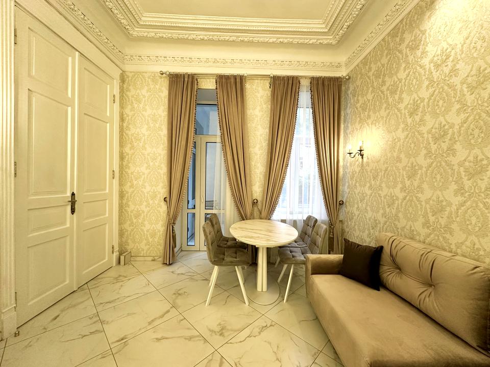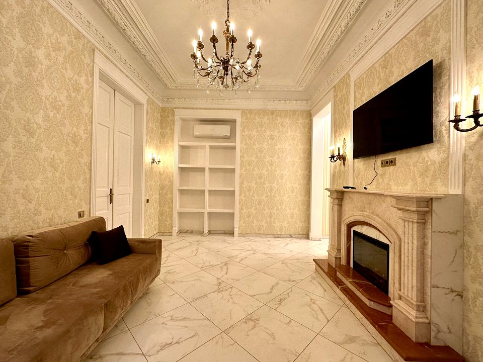 Квартира знаходиться на 2 поверсі, площа 61/38/11 кв.м. Висота стелі - 4 метри. Вікна у тихий двір з парковкою. Новий ремонт в класичному стилі, ніхто не користувався, ви будете першими) 2 кімнати - прохідна вітальня і окрема спальня, кухня з посудомийною машиною, санвузол, пральна з пральною та сушильною машинками Bosch, балкон. Кондиціонер Mitsubishi, бойлер, електричний камін у вітальні для затишних вечорів)