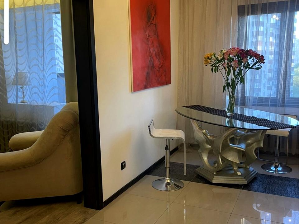 Квартира затишна, простора, світла, наповнена побутовою технікою та меблями.