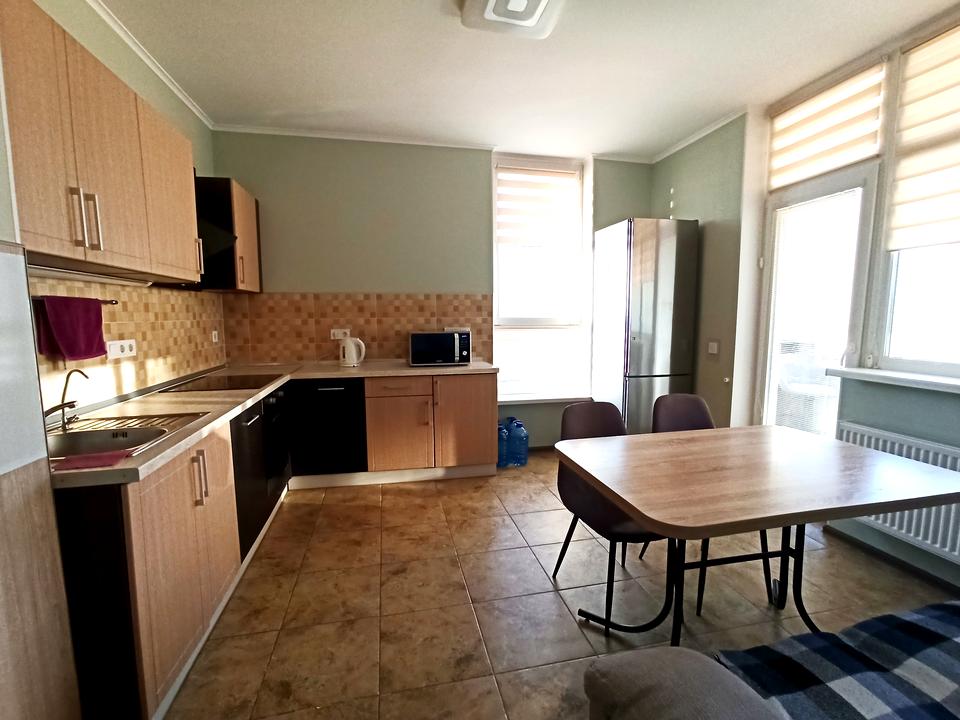 Квартира повністю мебльована та укомплектована необхідною технікою. Двоспальне ліжко з ортопедичною основою в кожній кімнаті і підйомними механізмами.