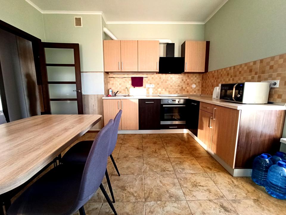 2 кондиціонери (тепло/холод), бойлер, пральна машина, холодильник, СВЧ, посудомийна машина, духова шафа, фільтр для очищення води "Зворотній осмос". Повний набір столових приладів. Стакани, кружки, чашки, ложки, каструлі, сковорідки, і багато чого іншого.