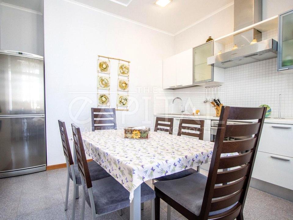 Пропонується простора квартира площею 123 м² на 18 поверсі з 24 у сучасному будинку. У вартість входять два паркомісця в підземному паркінгу.