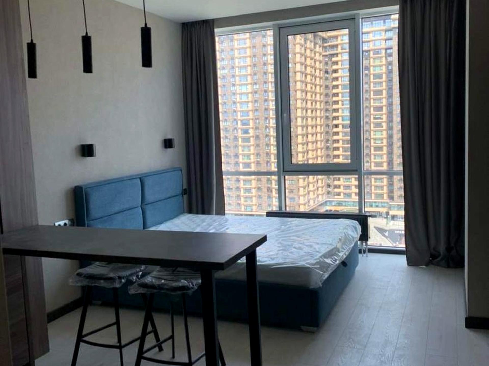 В квартире 1 комната, Технологія будівництва - Монолітно-каркасна, Тип будинку - Спец. проект. Планировка комнат Студия. В квартире есть Телевизор, Кабельное ТВ, Шкаф, Кровать, Кондиционер, Стиральная машина, Душевая кабина, Холодильник, Микроволновка, Посудомойная машина, Посуда, Счетчики. Общее состояние квартиры - С ремонтом. Работает без света - вода, отопление, интернет, лифт. Комиссия за услуги 50 %