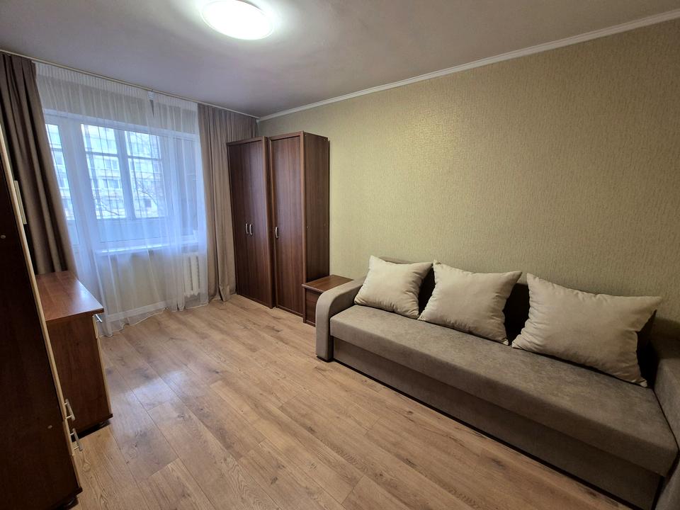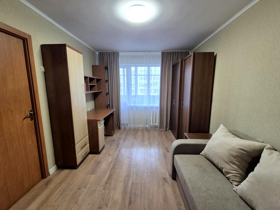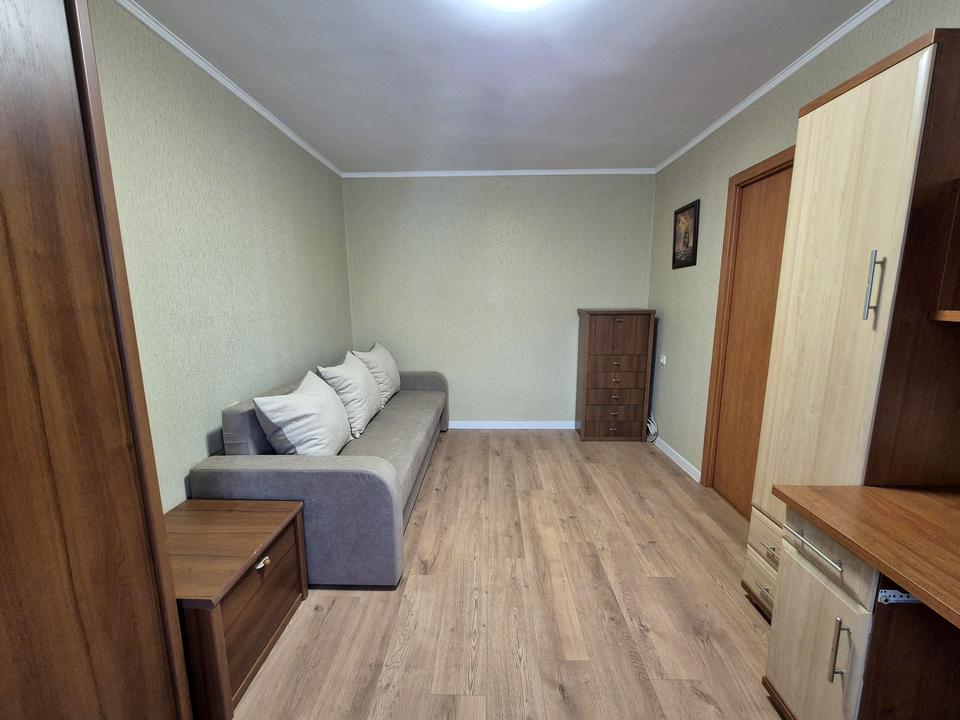 Кімната окремо, новий розкладний диван, є робочий стіл, декілька шаф для зберігання речей.