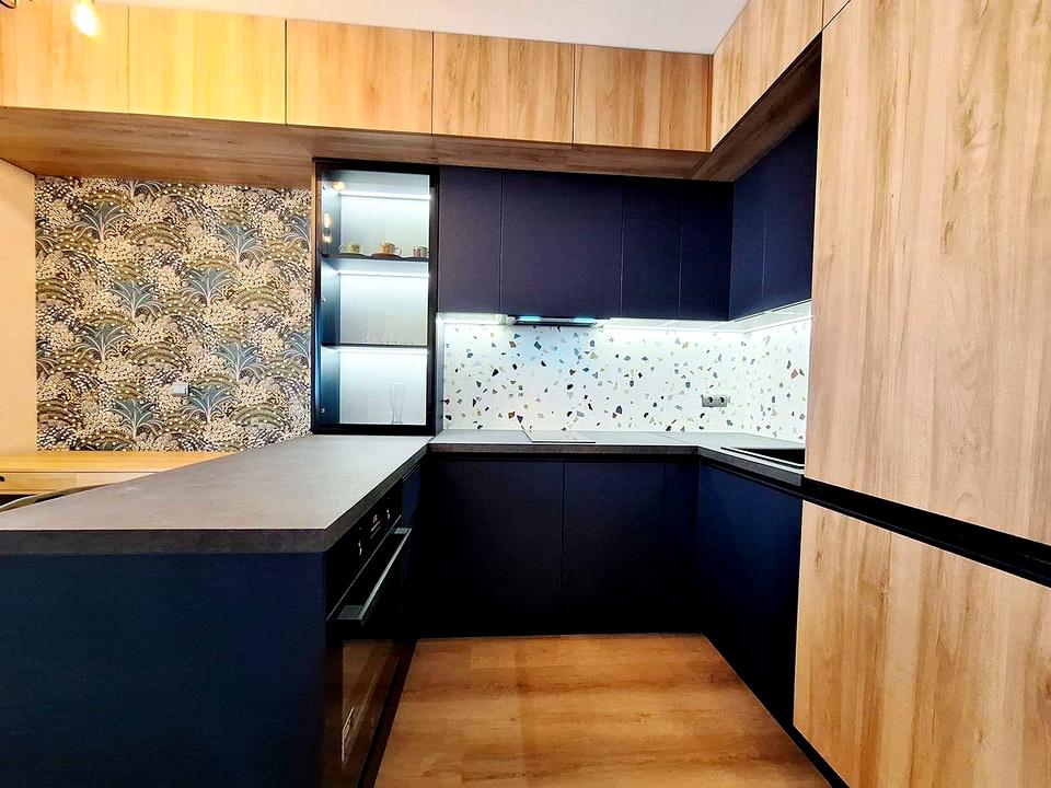 Нові меблі та техніка: великий диван, вбудована кухня, варильна поверхня, духовка, холодильник, кондиціонер, бойлер, пральна та посудомийна машини, телевізор, інвертор.