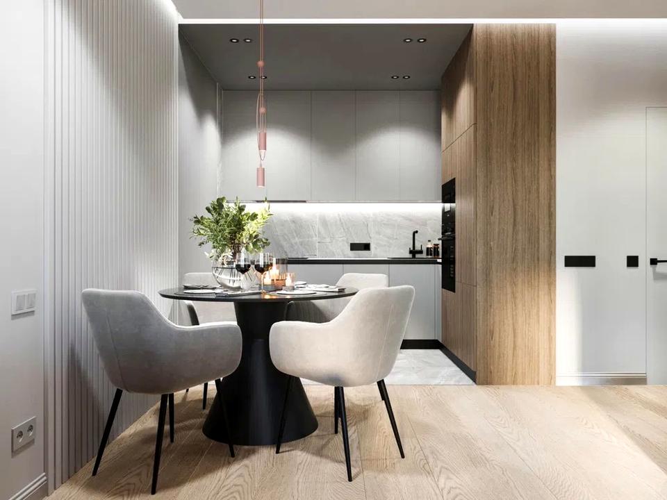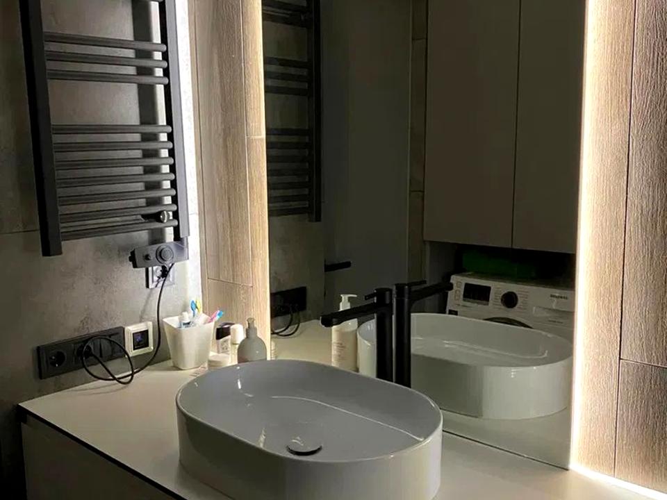У квартирі зроблений дизайнерський ремонт (дизайнер виграв у конкурсі з цим проєктом), квартира практична і безмежно стильна, все продумано до дрібниць. Практично у всій квартирі тепла підлога з підігрівом. Меблі всі робилися на замовлення з преміум-матеріалів. 3 телевізори, 2 кондиціонери, різні сценарії освітлення.