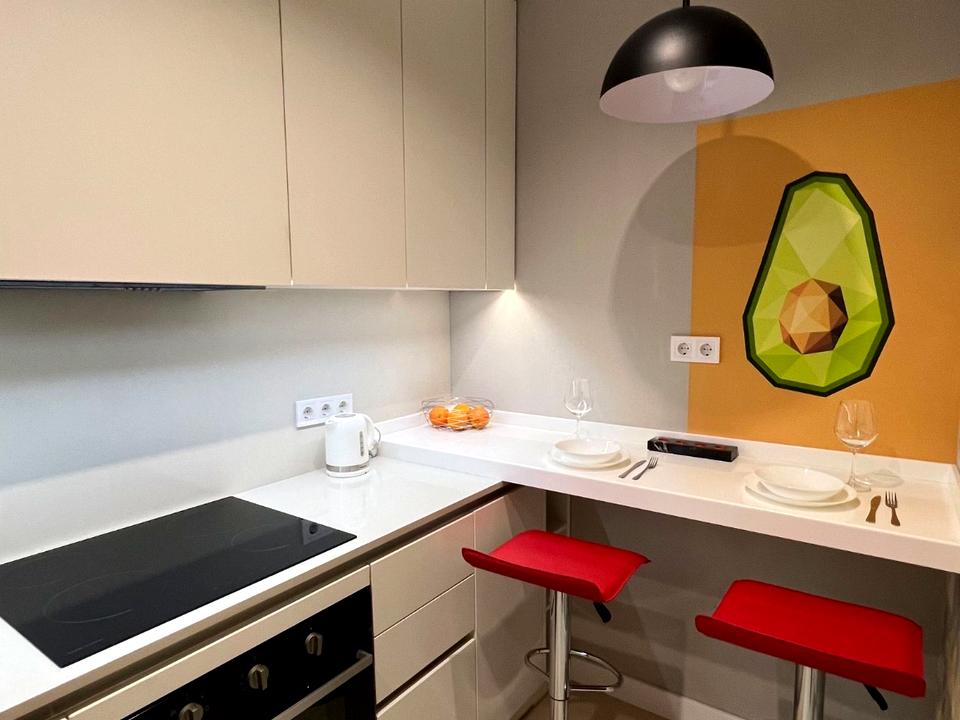Квартира с дизайнерским ремонтом, новый дом. Счетчики электричества (тариф день/ночь), воды, отопления. Квартира очень тёплая, сильного отопления не требует - полы с подогревом (долго держат температуру, после их отключения), кондиционер до -7 градусов.