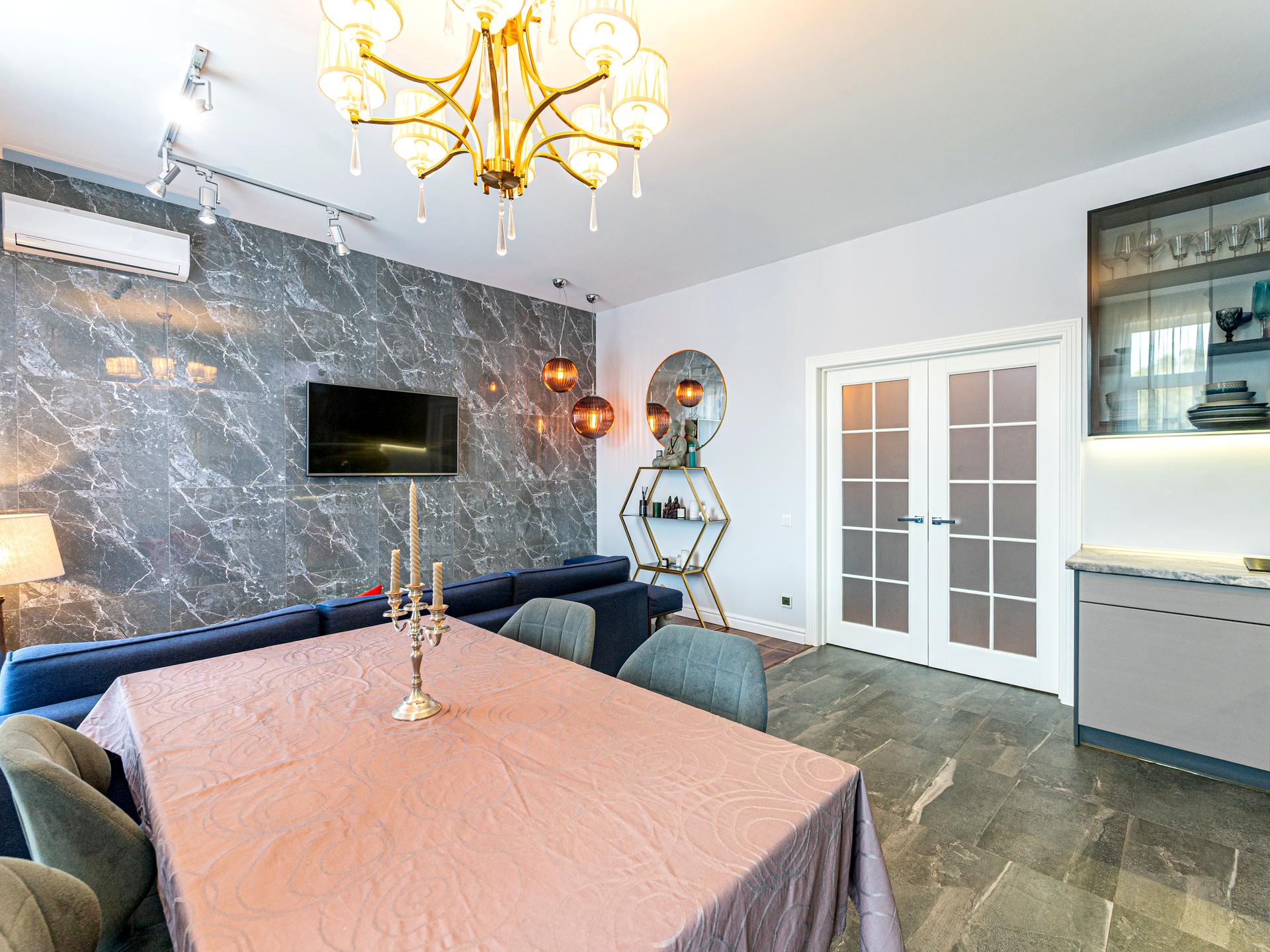 • Велика кухня-вітальня з розумним зонуванням – ідеальна для сімейних вечерь чи зустрічей з друзями.