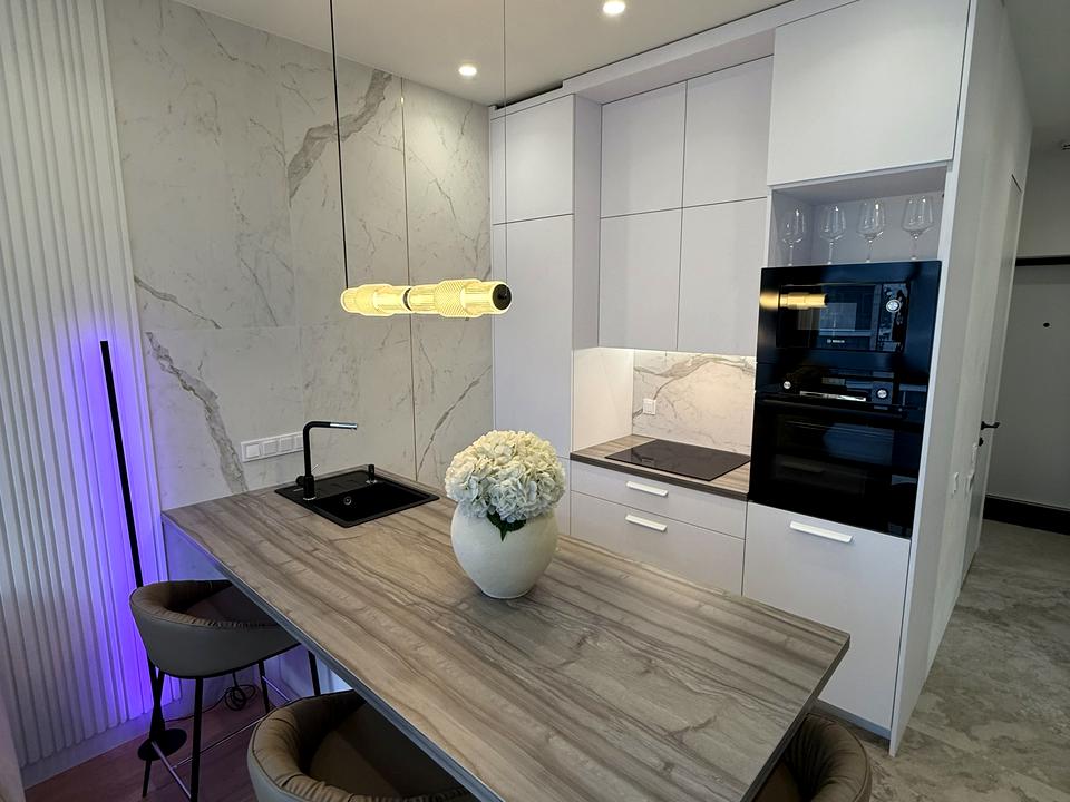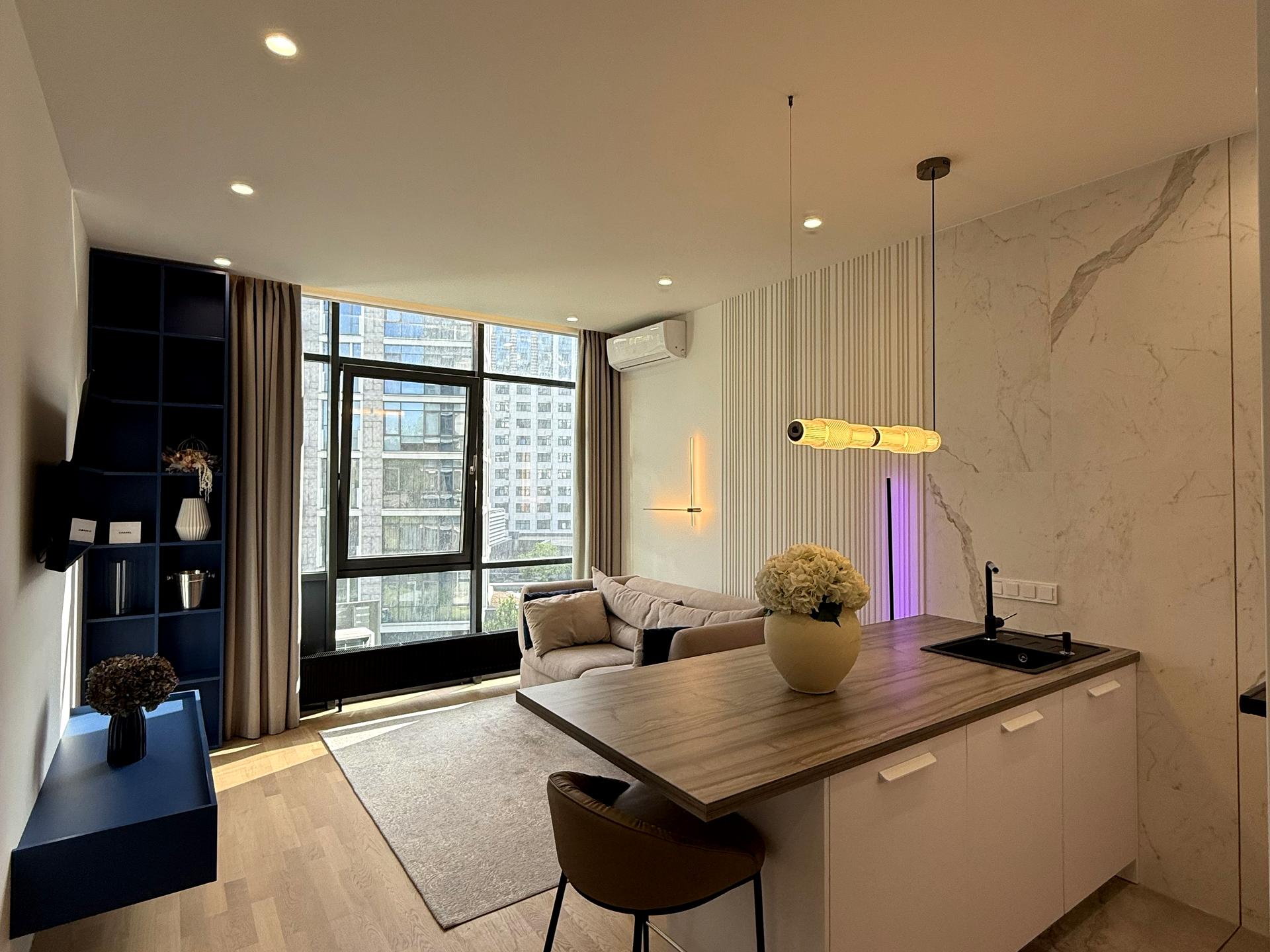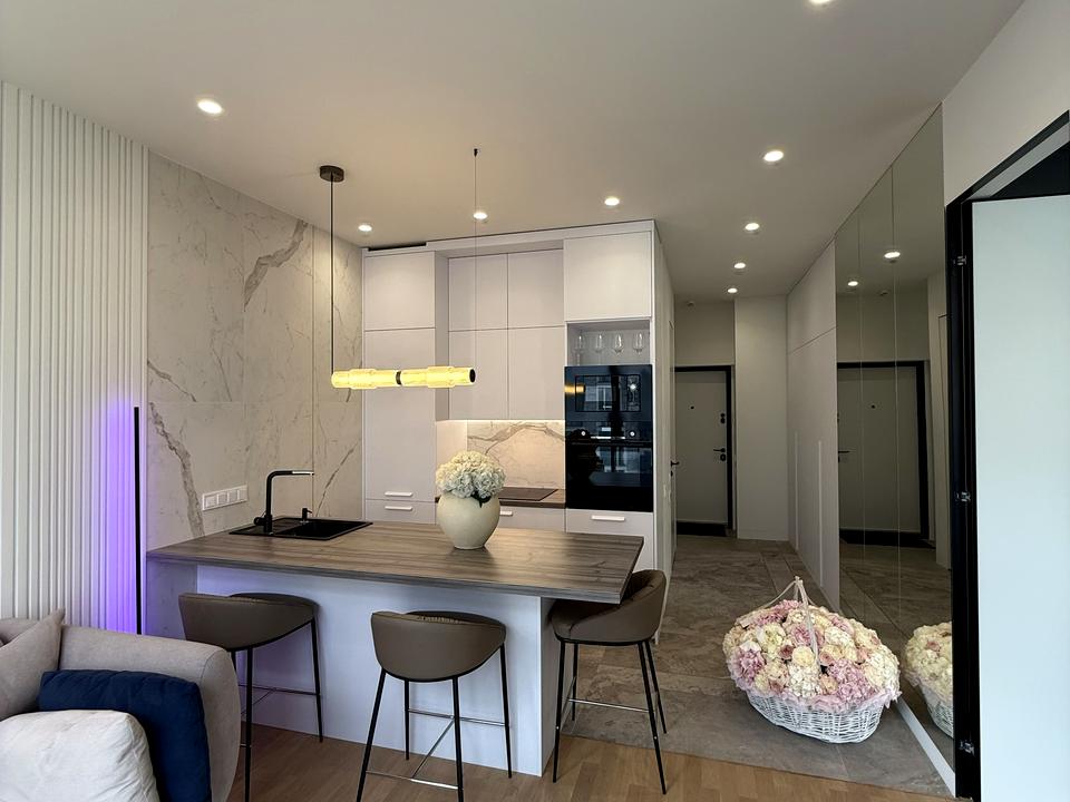 Функціональне планування: Простора кухня-вітальня створює єдиний відкритий простір для відпочинку та прийому гостей. Окрема спальня забезпечує приватність та спокій.