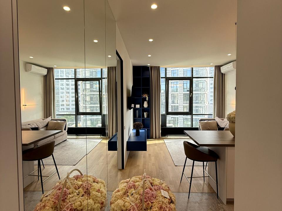 В квартире 2 комнаты, Технологія будівництва - Монолітно-каркасна, Тип будинку - Спец. проект. Планировка комнат Раздельная. В квартире есть Телевизор, Утюг, Шкаф, Кровать, Подогрев полов, Кондиционер, Стиральная машина, Сушильная машина, Душевая кабина, Холодильник, Посудомойная машина, Посуда. Дом построен в 2020 году. Общее состояние квартиры - С ремонтом. Работает без света - лифт. Комиссия за услуги 50 %