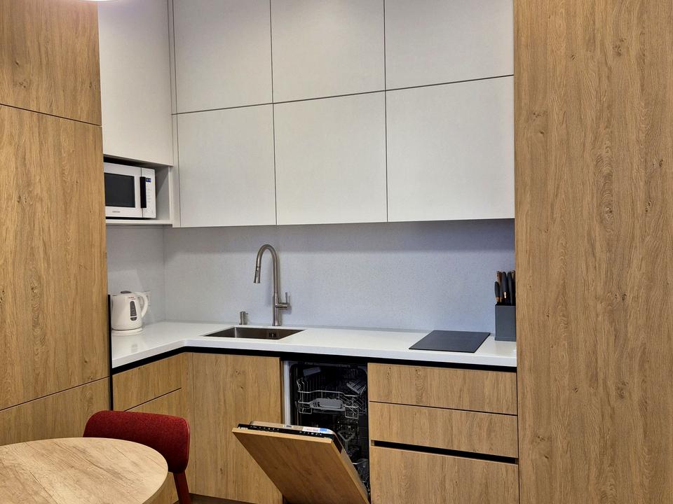 Продумана вбудована кухня.