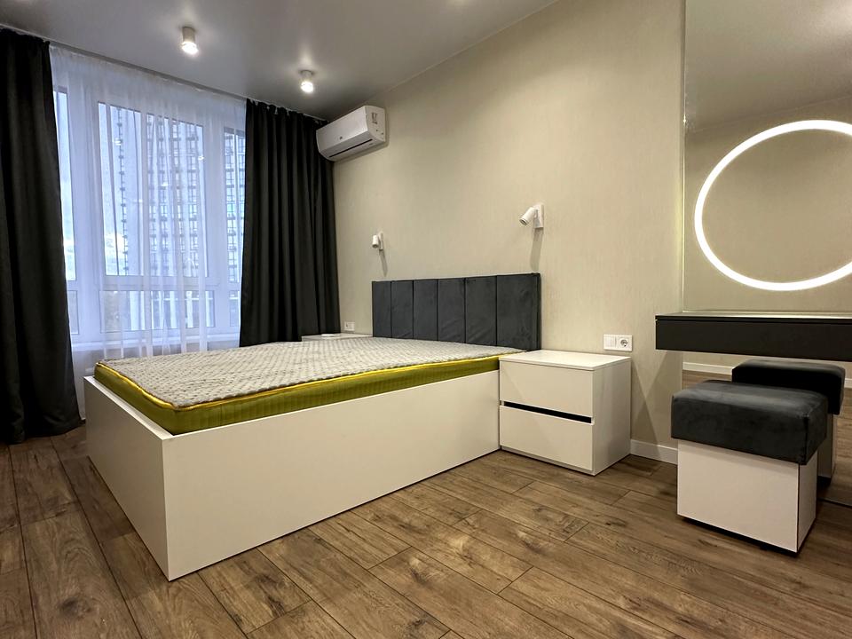 В квартире 2 комнаты, Технологія будівництва - Монолітно-каркасна, Тип будинку - Спец. проект. Планировка комнат Раздельная. В квартире есть Телевизор, Шкаф, Кровать, Подогрев полов, Кондиционер, Стиральная машина, Сушильная машина, Холодильник, Посудомойная машина, Счетчики. Дом построен в 2023 году. Общее состояние квартиры - С ремонтом. Предоставление документов. Работает без света - вода, отопление, интернет. Комиссия за услуги 50 %