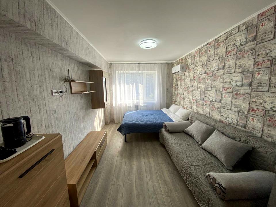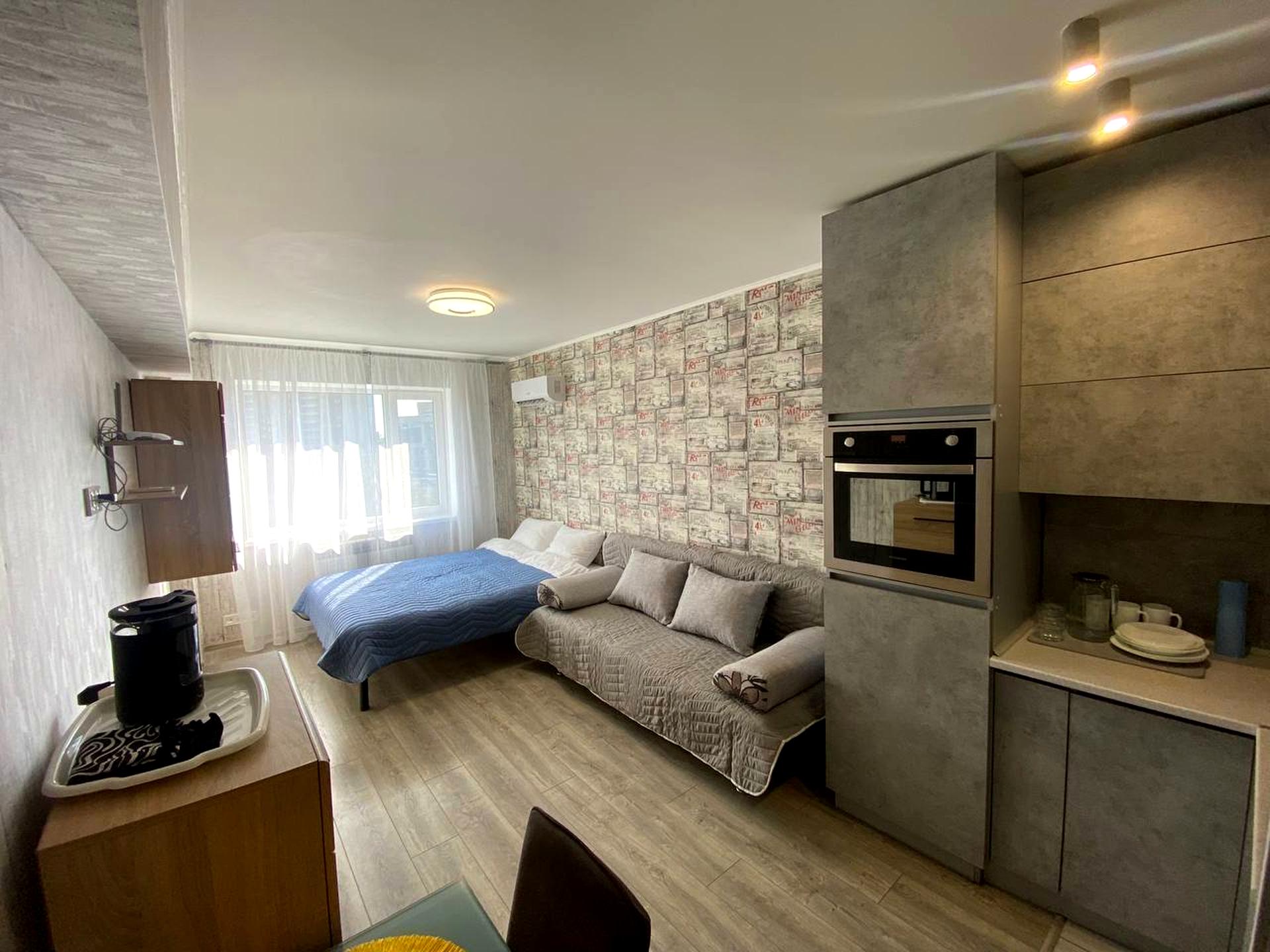 В квартире 1 комната. Вид из окон во двор. Квартира стандартная, планировка комнат Студия. Есть газ, кухонная плита электрическая. Горячая вода - электрический бойлер. Отопление индивидуальное - . Совместный санузел, туалет/душ. Окна металлопластиковые. В квартире есть Шкаф, Кровать, Кондиционер, Стиральная машина, Душевая кабина, Холодильник, Микроволновка, Посуда, Счетчики. Дом построен в 2017 году. Общее состояние квартиры - С ремонтом. Автопарковка, Охрана, Консьерж. Рядом есть школа, остановки, детсад, развлекательные заведения, супермаркет, парк, речка/озеро. Предоставление документов. Интернет оптоволоконный. Работает без света - вода, газ, интернет. Комиссия за услуги 50 %