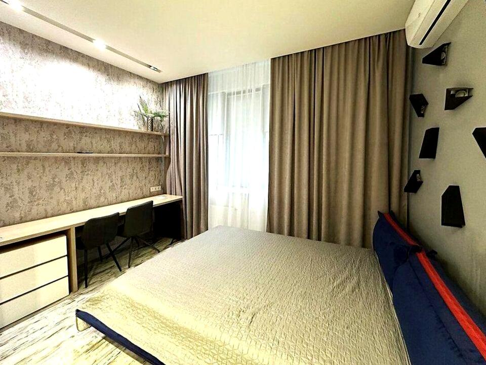 Оренда стильної квартири в одному з найкращих житлових комплексів лівого берега Києва, ЖК River Stone, вул. Трускавецька, 2 А. Територія з дитячими та спортивними майданчиками, продуктові то господарчі магазини, кафе та ресторани, побутові та розважальні заклади, салони краси, сучасний парк з набережною, та багато інших закладів які забезпечують комфортне проживання мешканцям. Поруч метро Осокорки, торгово-розважальний комплекс River Mall, Аркадия, Новус і др. Загальна площа 55 м2, є гардеробна кімната, санвузол сумісний. Квартира з дізайнерським ремонтом та укомплектуванням, сучасне, молодіжне оформлення, зручне планування, є вся побутова техніка, кондиціювання, підігрів підлоги. Комплекс охороняється, також є цілодобова охорона в під'їзді. Швідкісні 3 ліфти працюють коли немає світла.