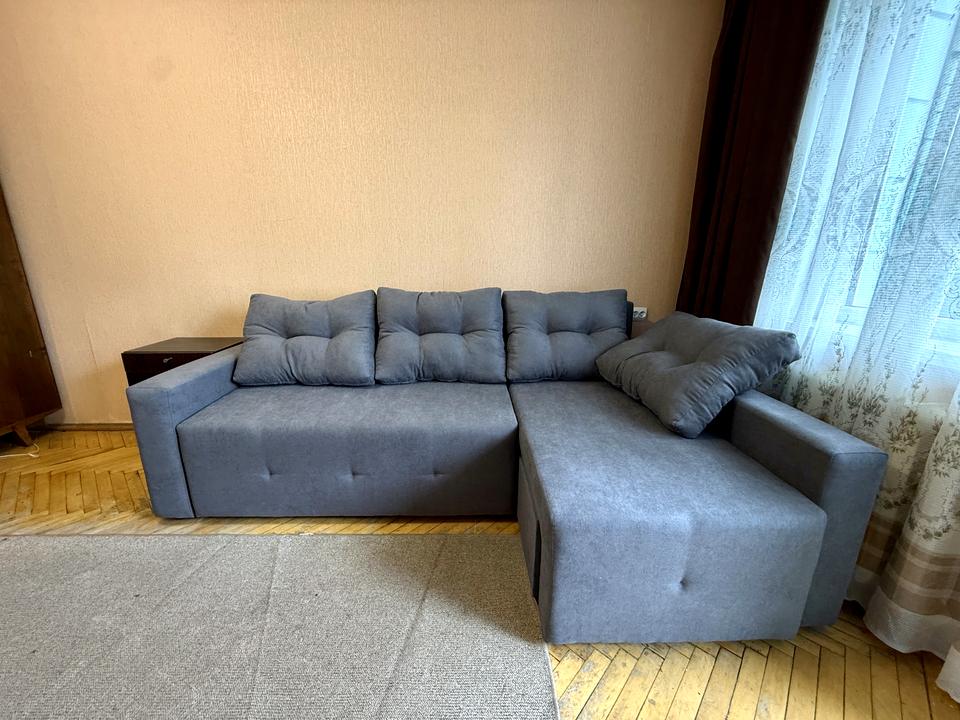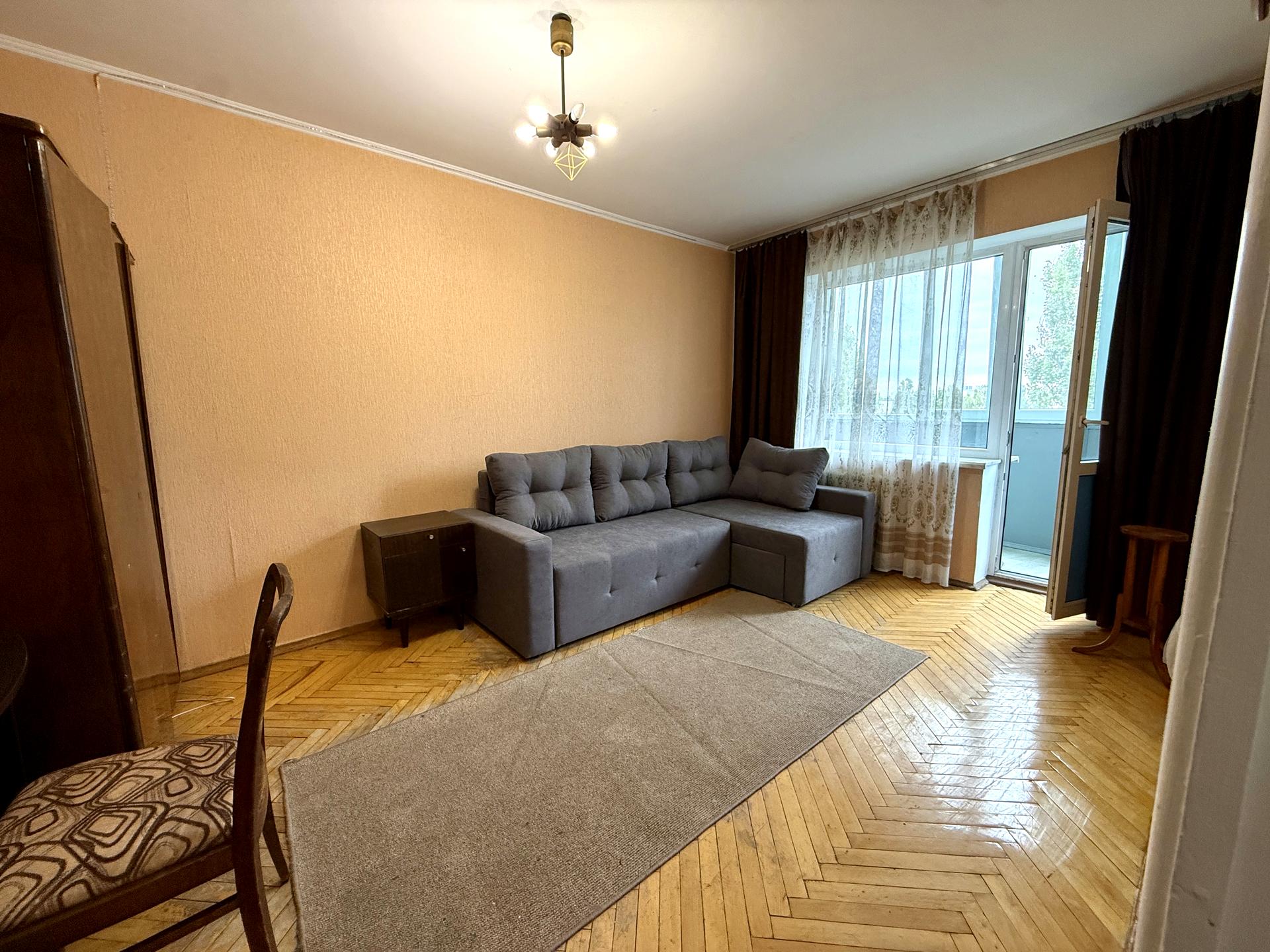 У кімнаті –шафа, новий розкладний диван, робочий стіл, стілець. Є вихід на засклений балкон.