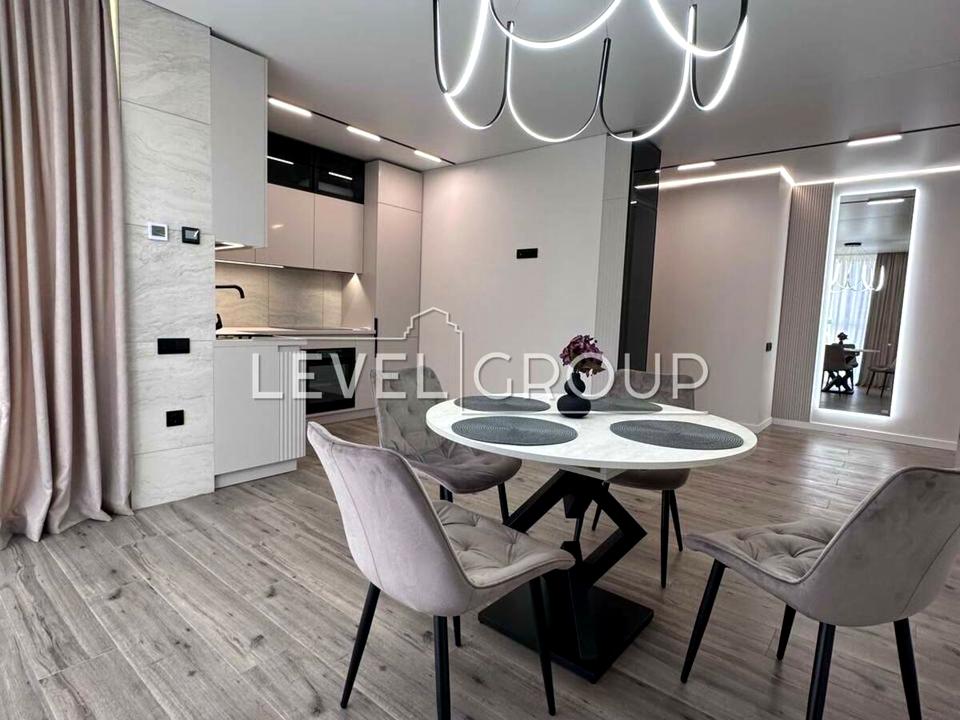 Пропонується в оренду простора 2-кімнатна квартира площею 74,5 м² з ексклюзивним дизайнерським ремонтом, розташована на 9 поверсі сучасного житлового комплексу 'Сирецькі Сади'.