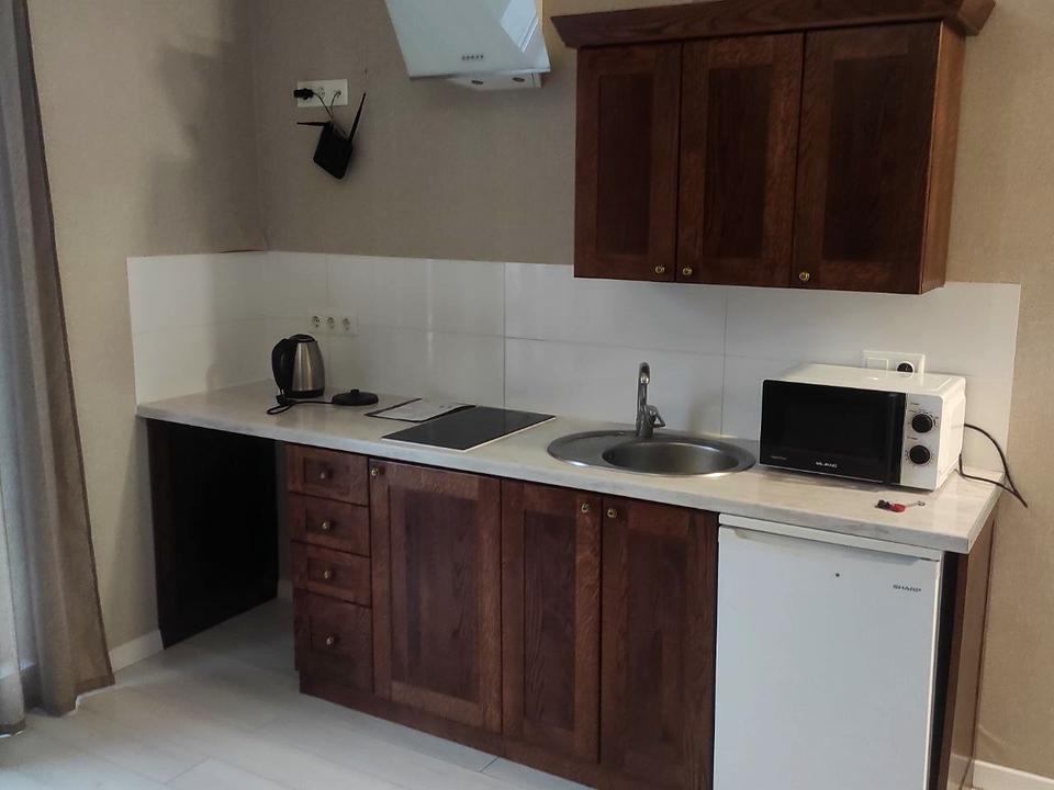 СМА, мініхолодильник, варильна поверхня, мікрохвильова піч, витяжка, бойлер, кондиціонер інверторний спліт система (працює на опалення та охолодження), великий кутовий розкладний диван, місткий гардеробний шафа з натурального дерева, стіл, стільці, інтернет, роутер.