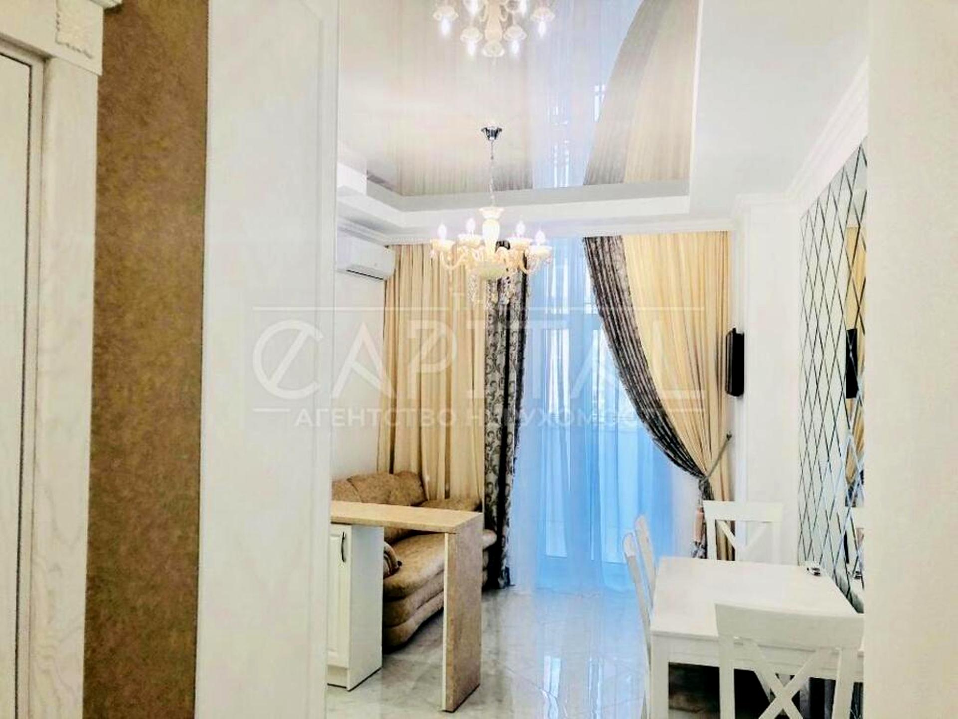 Планировка: кухня-студио, спальня, гардеробная, балкон, с/у смежный (ванна).