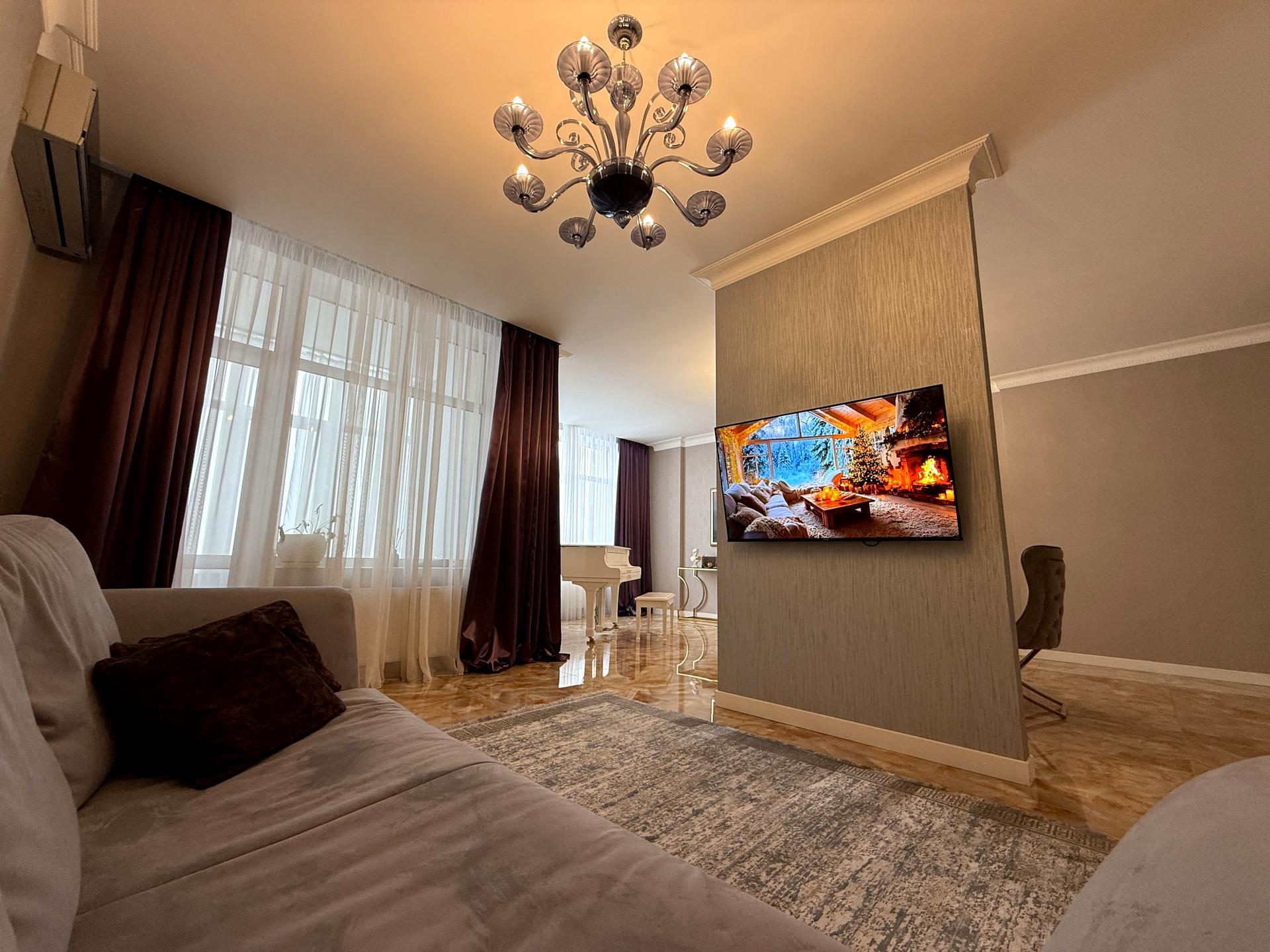В квартире 4 комнаты, Технологія будівництва - Монолітно-каркасна, Тип будинку - Спец. проект. Планировка комнат Раздельная. В квартире есть Телевизор, Кабельное ТВ, Спутниковое ТВ, Утюг, Подогрев полов, Камин, Кондиционер, Стиральная машина, Сушильная машина, Душевая кабина, Ванна, Джакузи, Холодильник, Микроволновка, Посудомойная машина, Посуда, Сигнализация. Дом построен в 2014 году. Общее состояние квартиры - С ремонтом. Работает без света - вода, газ, отопление, интернет, лифт. Комиссия за услуги 50 %