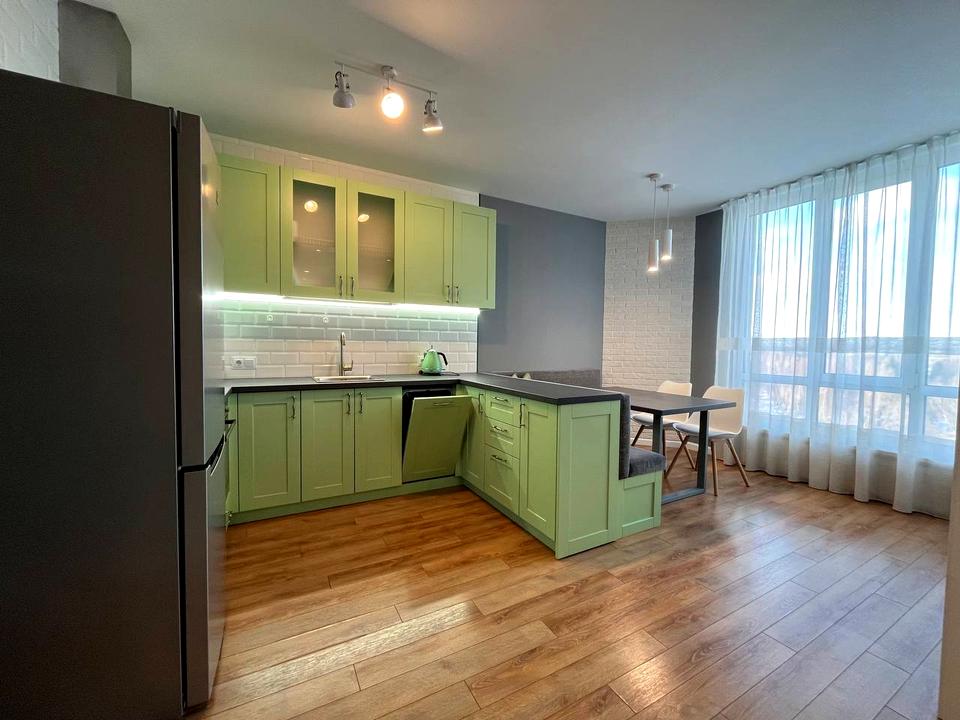 Здається в оренду простора квартира-студія на 10 поверсі по вул. Михайла Донця, 2а в престижному ЖК в 5 хвилин пішої доступності до парка Відрадрадний, Мамаєва Слобода, університет НАУ.