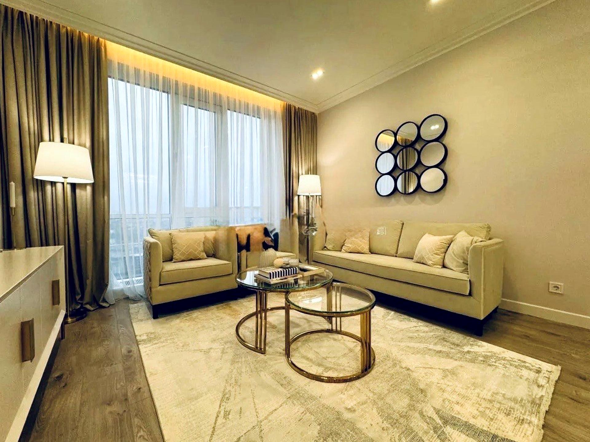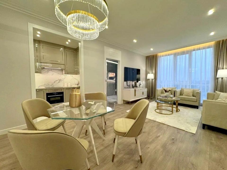 Меблі, побутова техніка, гардеробна, вбудовані шафи, вбудована кухня з технікою, кондиціювання, інтернет, ТБ.