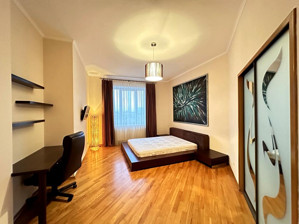 Общая площадь 96 м2., комната 55 м2, кухня 15, с отличным ремонтом, комнаты все меблированные, оборудована абсолютно всей техникой: встроенная кухня, вытяжка, электроплита+духовка, электрочайник, холодильник, стиральная машина, два бойлера, телевизор плазма, письменный стол+кресло, два шкафа-купе гардеробные комнаты, сушилка, гладильная доска. В доме есть подземный паркинг, во дворе присутствует автомобильная стоянка, закрытая территория с охранной 24/7, консьерж и т.д.