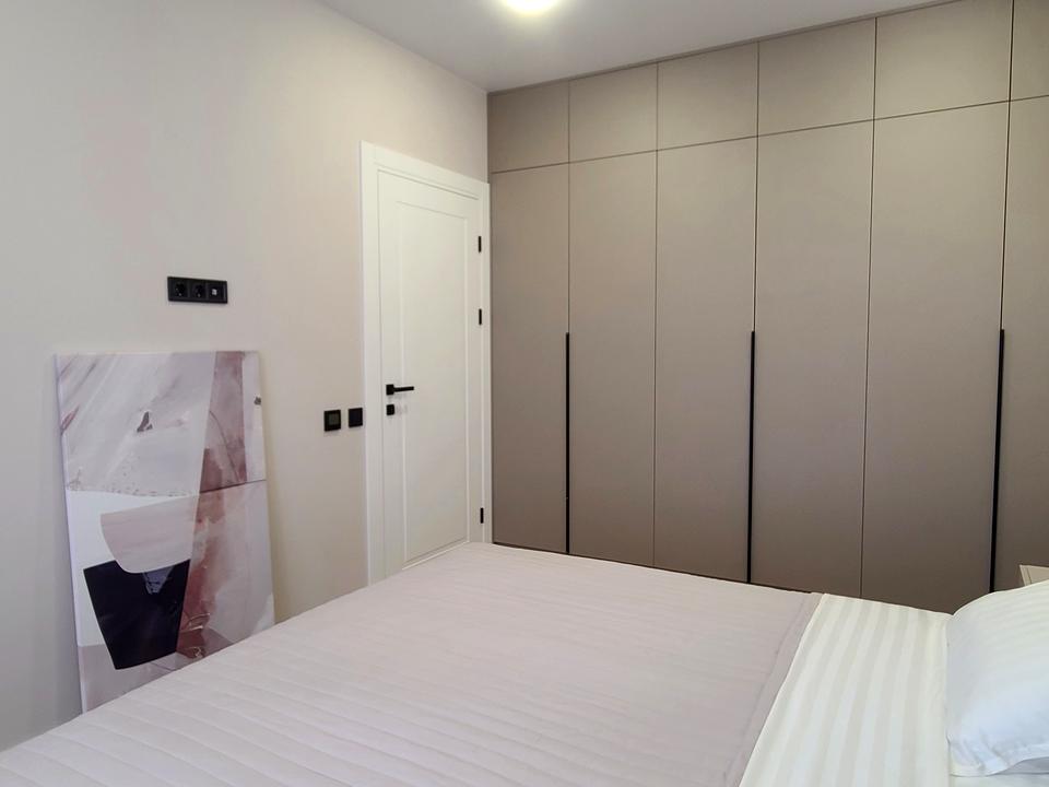 Встановлено: посудомийна машина, варильна поверхня, духова шафа, мікрохвильва піч, вбудований холодильник.