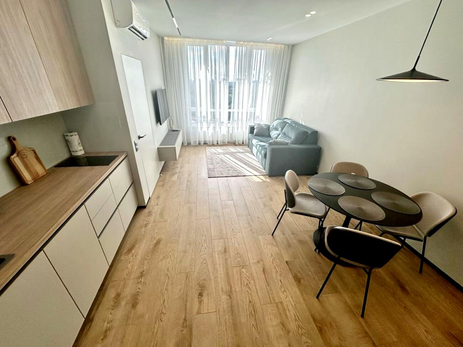 В квартире 2 комнаты, высота потолков 3 метра, Технологія будівництва - Монолітно-каркасна, Тип будинку - Спец. проект. Планировка комнат Раздельная. В квартире есть Телевизор, Кабельное ТВ, Подогрев полов, Кондиционер, Стиральная машина, Сушильная машина, Душевая кабина, Холодильник, Микроволновка, Посудомойная машина. Дом построен в 2020 году. Общее состояние квартиры - С ремонтом. Комиссия за услуги 50 %