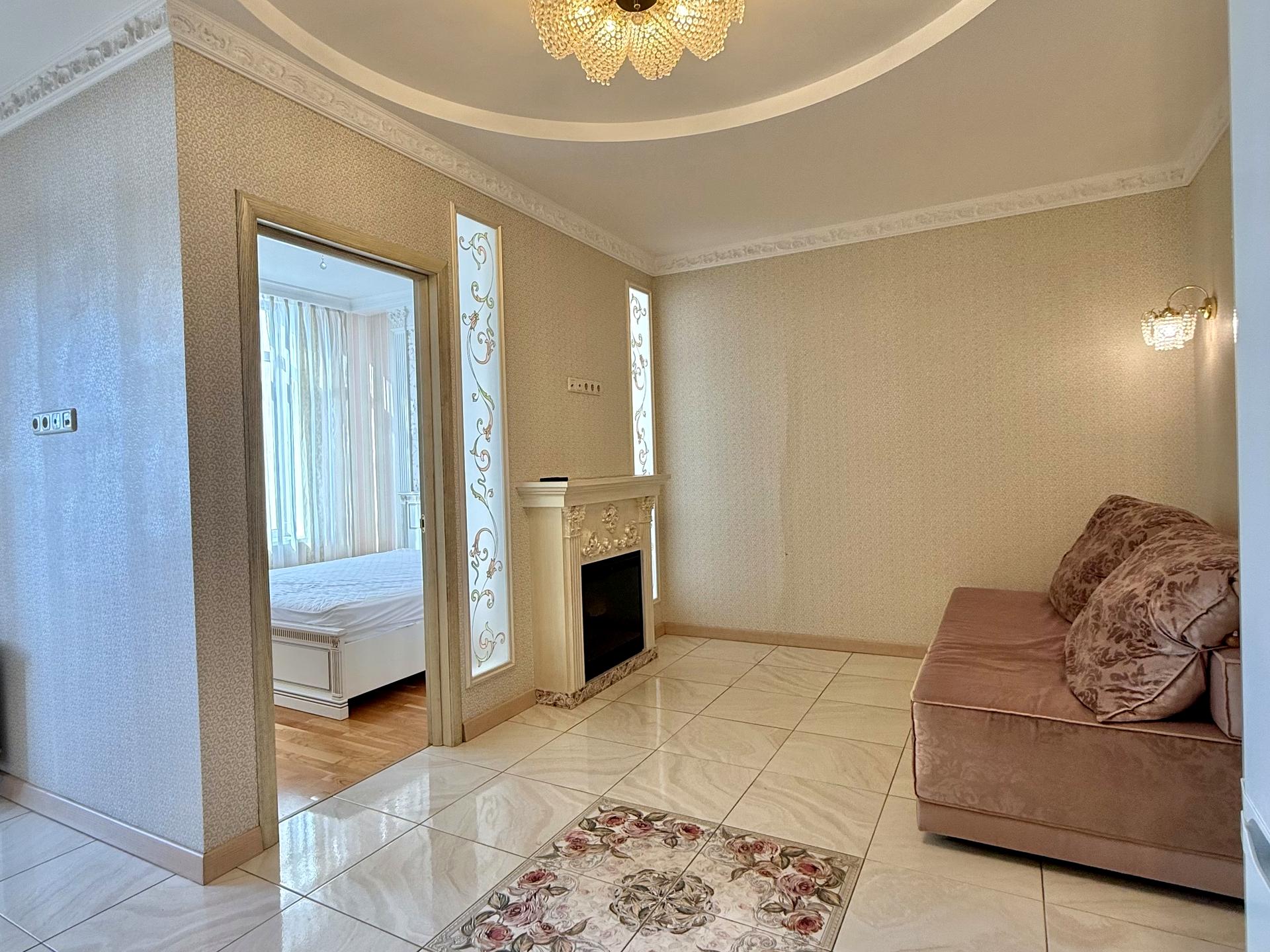 В квартире 2 комнаты, высота потолков 2.7 метра, Технологія будівництва - Монолітно-каркасна, Тип будинку - Спец. проект. Газа нет, кухонная плита электрическая. Есть балкон. В квартире есть Телевизор, Подогрев полов, Камин, Кондиционер, Стиральная машина, Ванна, Холодильник, Микроволновка, Посудомойная машина. Дом построен в 2012 году. Общее состояние квартиры - С ремонтом. Горячая вода - электрический бойлер. Количество санузлов: 1. Интернет беспроводной. Работает без света - вода, интернет, лифт. Тип кухни - кухня-студия. Количество спален: 1. Комиссия за услуги 50 %