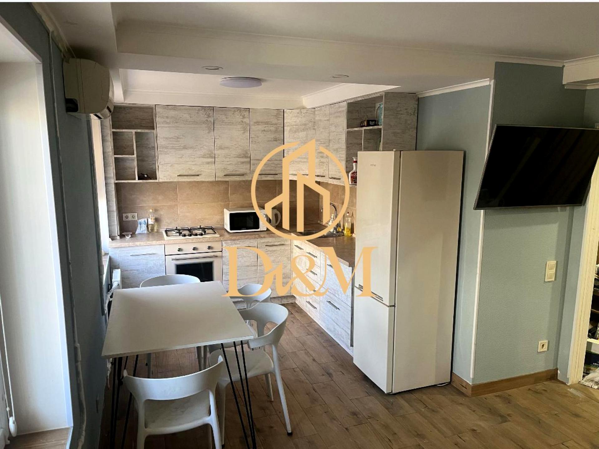 Простора квартира загальною площею 60 м². Зручне планування: дві окремі кімнати, суміжні вітальня та кухня, суміжний санвузол.