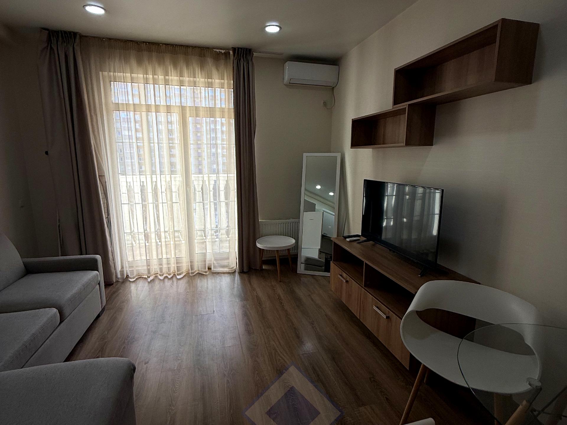 В квартире 1 комната, высота потолков 3 метра, Технологія будівництва - Монолітно-каркасна, Тип будинку - Спец. проект. Кухонная плита электрическая. Есть балкон. Дом построен в 2022 году. Общее состояние квартиры - С ремонтом. Горячая вода - электрический бойлер. Количество санузлов: 1. Интернет оптоволоконный. Работает без света - вода, отопление, интернет. Тип кухни - кухня-студия. Количество спален: 1. Комиссия за услуги 50 %