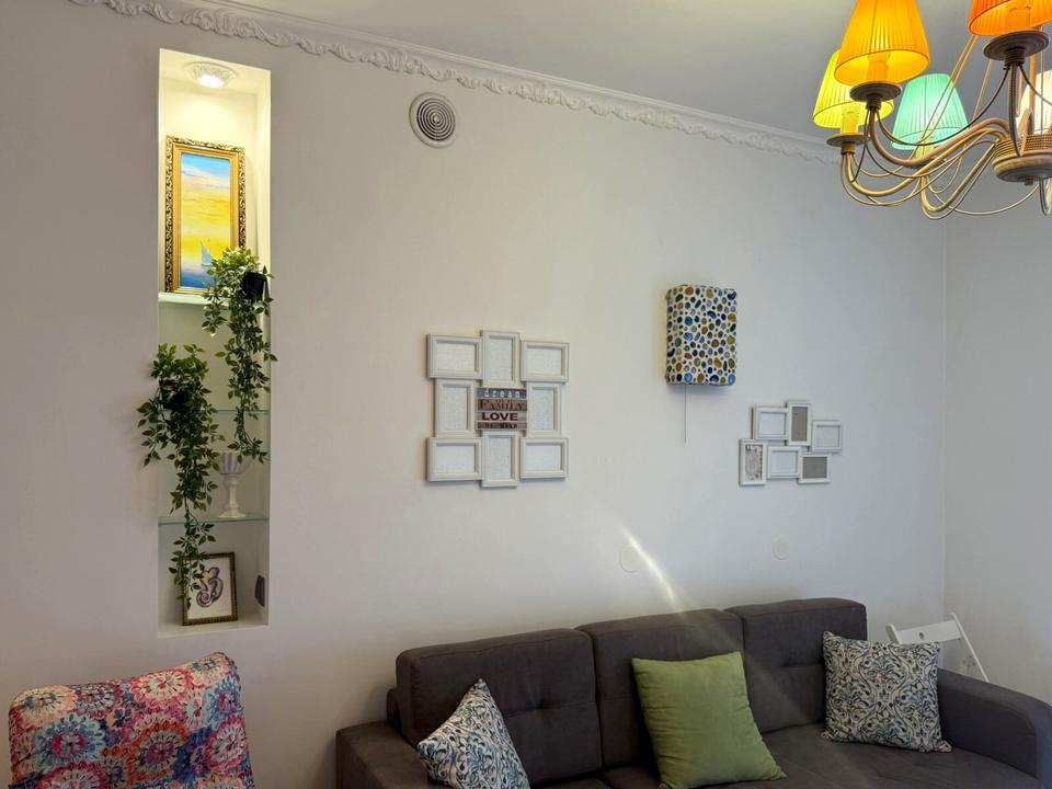 Новий диван, холодильник, а також бойлер, що може використовуватись на час профілактичних відключень гарячої води.