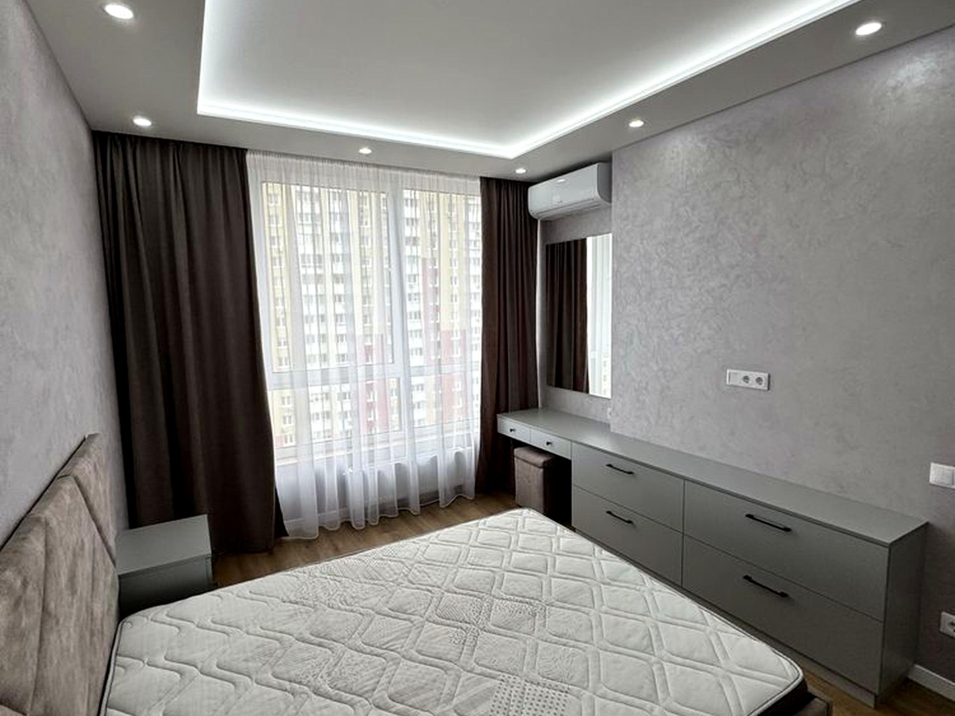 Квартира укомплектована меблями та технікою: 2 кондиціонера, посудомийна машина,пральна машина, бойлер, духова шафа, мікрохвильова піч , варильна поверхня, холодильник, електрочайник, телевізор.