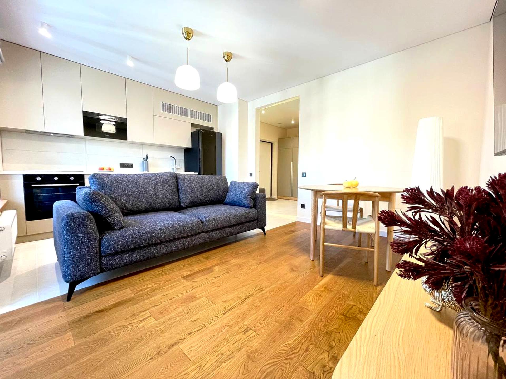 В квартире 2 комнаты, высота потолков 2.7 метра, Технологія будівництва - Монолітно-каркасна, Тип будинку - Спец. проект. Газа нет, кухонная плита электрическая. Есть балкон. В квартире есть Телевизор, Кондиционер, Стиральная машина, Ванна, Холодильник, Микроволновка, Посудомойная машина. Дом построен в 2021 году. Общее состояние квартиры - С ремонтом. Горячая вода - электрический бойлер. Количество санузлов: 1. Интернет оптоволоконный. Работает без света - вода, отопление, лифт. Тип кухни - отдельная кухня. Количество спален: 2. Комиссия за услуги 50 %