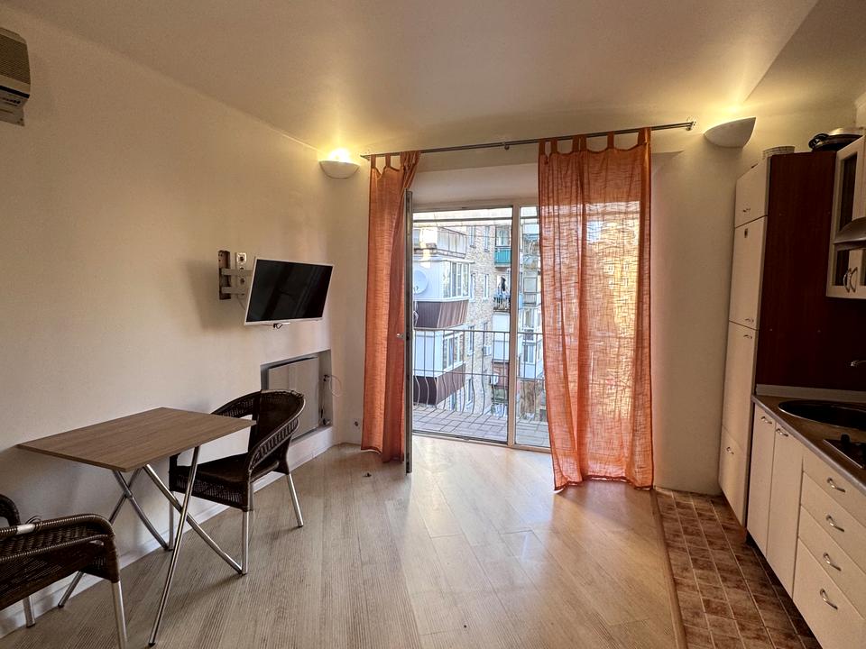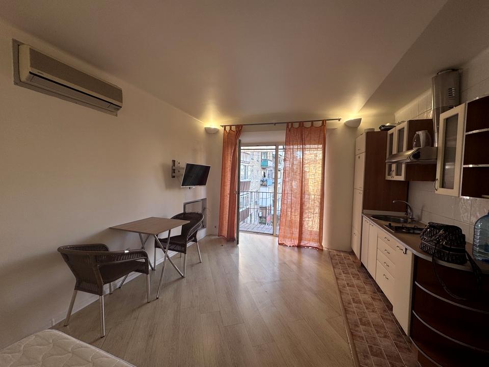 В квартире 1 комната, высота потолков 3 метра, Технологія будівництва - Цегляна, Тип будинку - Сталінка. Есть газ, кухонная плита газовая. Есть балкон. В квартире есть Подогрев полов, Кондиционер, Стиральная машина, Душевая кабина, Холодильник, Микроволновка. Дом построен в 1960 году. Общее состояние квартиры - С ремонтом. Горячая вода - электрический бойлер. Количество санузлов: 1. Интернет оптоволоконный. Работает без света - газ, интернет. Тип кухни - кухня-студия. Количество спален: 1. Комиссия за услуги 50 %