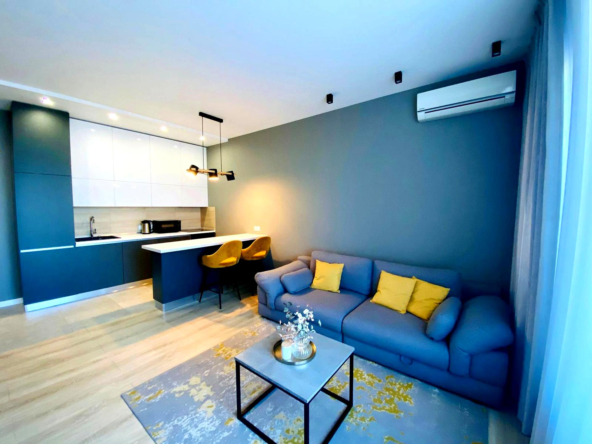 У квартирі зроблений якісний ремонт, є вся необхідна побутова техніка, кондиціонер, два смарт-телевізори, високошвидкісний інтернет, сигналізація, є посуд.