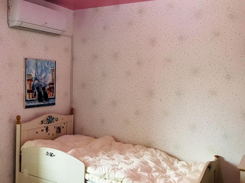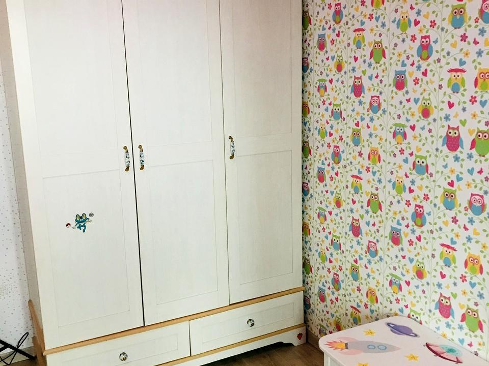 Спальня з двоспальним ліжком та ортопедичним диваном, дитяча кімната, вітальня з розкладним диваном. В квартирі багато шаф для зручного зберігання речей.