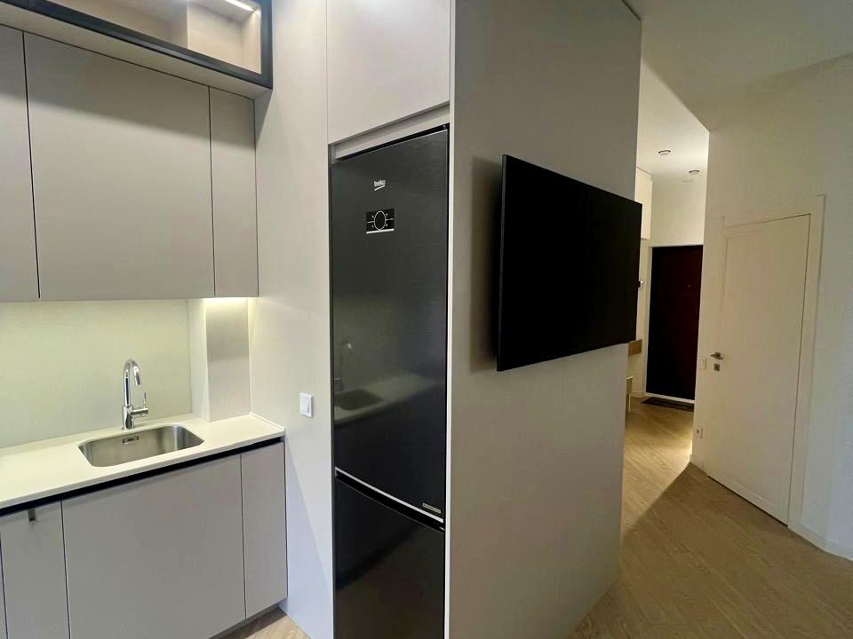 В квартире 1 комната, высота потолков 3.3 метра, Технологія будівництва - Монолітно-каркасна, Тип будинку - Спец. проект. Газа нет. Есть балкон. Дом построен в 2018 году. Общее состояние квартиры - С ремонтом. Горячая вода - централизованная. Количество санузлов: 1. Интернет оптоволоконный. Работает без света - вода, отопление, интернет, лифт. Тип кухни - кухня-студия. Количество спален: 1. Комиссия за услуги 50 %