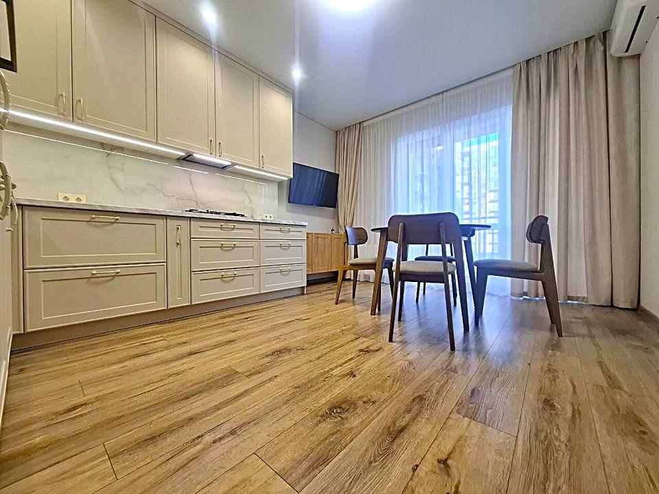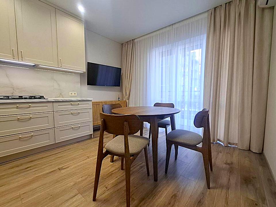 В квартире 2 комнаты, высота потолков 2.7 метра, Технологія будівництва - Цегляна, Тип будинку - Спец. проект. Есть газ, кухонная плита газовая. Есть балкон. В квартире есть Телевизор, Подогрев полов, Кондиционер, Стиральная машина, Душевая кабина, Холодильник, Микроволновка, Посудомойная машина. Дом построен в 2022 году. Общее состояние квартиры - С ремонтом. Горячая вода - электрический бойлер. Количество санузлов: 1. Интернет оптоволоконный. Работает без света - вода, газ, отопление, интернет. Тип кухни - кухня-студия. Количество спален: 1. Комиссия за услуги 50 %