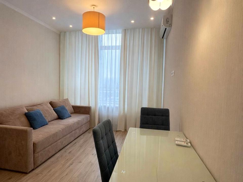 В квартире 1 комната, высота потолков 3 метра, Технологія будівництва - Монолітно-каркасна, Тип будинку - Спец. проект. Газа нет, кухонная плита электрическая. Есть балкон. В квартире есть Телевизор, Утюг, Подогрев полов, Кондиционер, Стиральная машина, Душевая кабина, Холодильник, Микроволновка, Посудомойная машина, Посуда, Сейф. Дом построен в 2017 году. Общее состояние квартиры - С ремонтом. Горячая вода - электрический бойлер. Количество санузлов: 1. Интернет оптоволоконный. Работает без света - вода, отопление, интернет, лифт. Тип кухни - кухня-студия. Количество спален: 1. Без комиссии