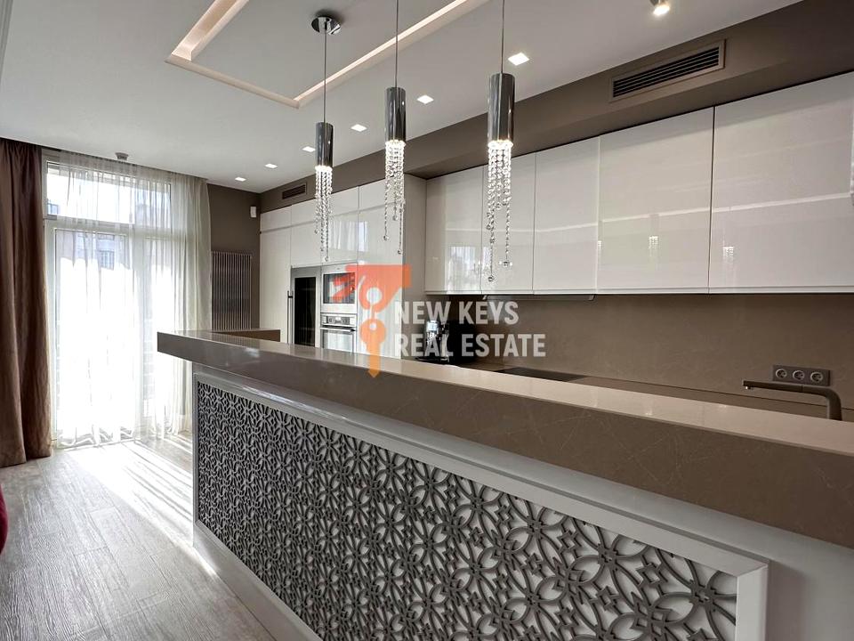 Інтер’єр виконаний у стилі арт-деко: кришталеві люстри, якісні меблі, натуральні матеріали, текстиль у теплих відтінках. Повністю укомплектована технікою та посудом. Техніка AEG, встановлена приточно-витяжна вентиляція, є виний холодильник, кавова машина. Дуже багато місць для зберігання речей⠀