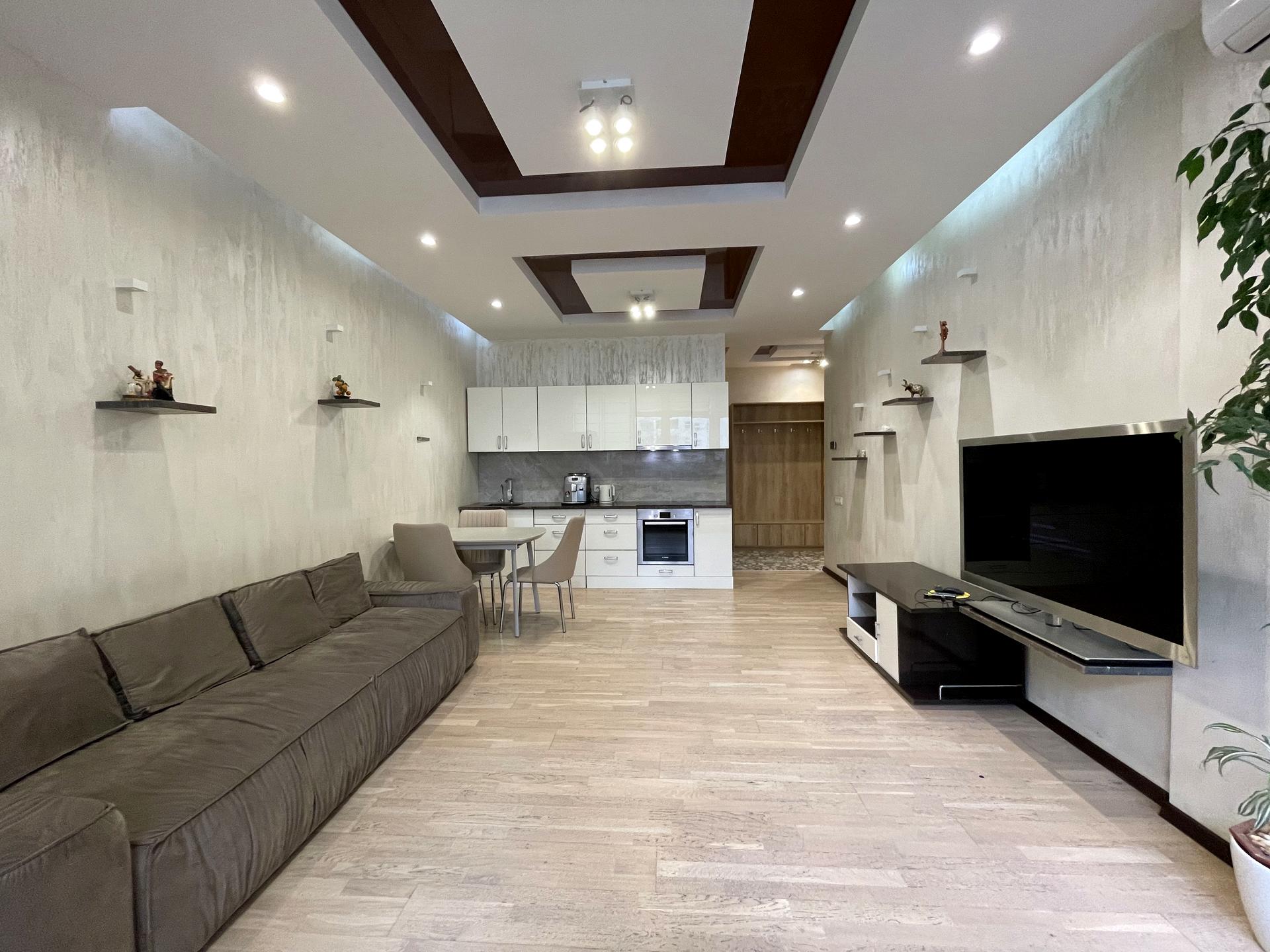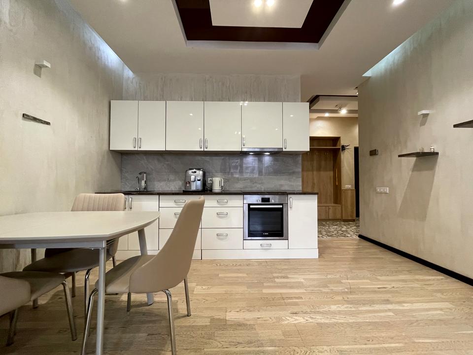 The apartment features high-quality renovation and is fully furnished with modern furniture and appliances from leading manufacturers. Functional layout ensures comfortable living for a couple or a family.