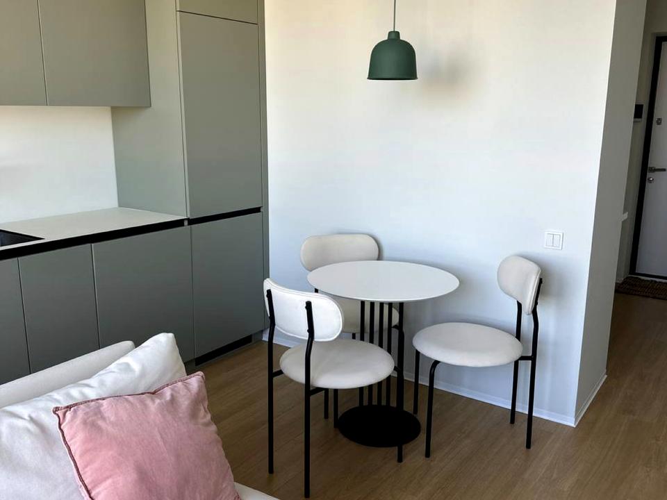 В квартире 1 комната, высота потолков 2.7 метра, Технологія будівництва - Монолітно-каркасна, Тип будинку - Спец. проект. Газа нет, кухонная плита электрическая. В квартире есть Телевизор, Подогрев полов, Стиральная машина, Сушильная машина, Холодильник, Микроволновка, Посудомойная машина, Сигнализация. Дом построен в 2021 году. Общее состояние квартиры - С ремонтом. Горячая вода - электрический бойлер. Количество санузлов: 1. Интернет оптоволоконный. Работает без света - вода, отопление, лифт. Тип кухни - кухня-студия. Количество спален: 1. Комиссия за услуги 50 %