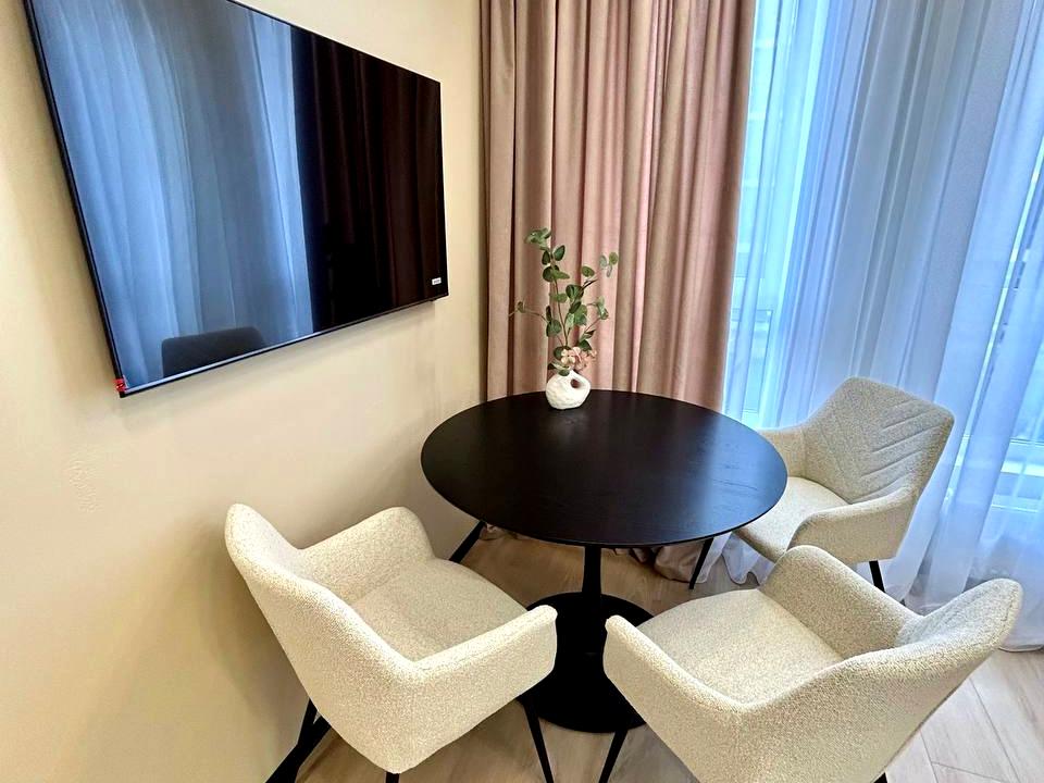 В квартире 1 комната, Технологія будівництва - Монолітно-каркасна, Тип будинку - Спец. проект. Газа нет, кухонная плита электрическая. Есть балкон. В квартире есть Телевизор, Кабельное ТВ, Спутниковое ТВ, Подогрев полов, Кондиционер, Стиральная машина, Ванна, Холодильник, Микроволновка, Посудомойная машина, Сигнализация. Дом построен в 2024 году. Общее состояние квартиры - С ремонтом. Безбарьерность: вход в дом на уровне земли, дверные проемы в доме шириной более 0.9 м, парковочные места для людей з инвалидностью, лифт, приспособленный к инвалидной коляске. Горячая вода - электрический бойлер. Количество санузлов: 1. Интернет оптоволоконный. Тип кухни - кухня-студия. Количество спален: 1. Без комиссии