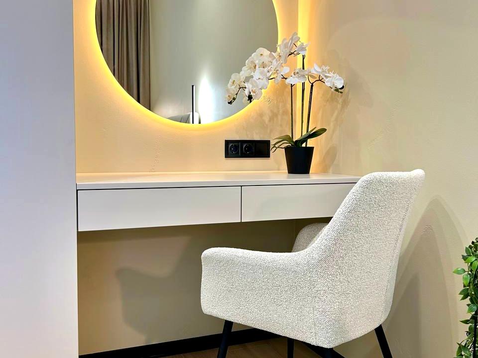 Особливої атмосфери додає багаторівневе декоративне підсвічування, а наявність ванної стане справжнім бонусом для релаксу.