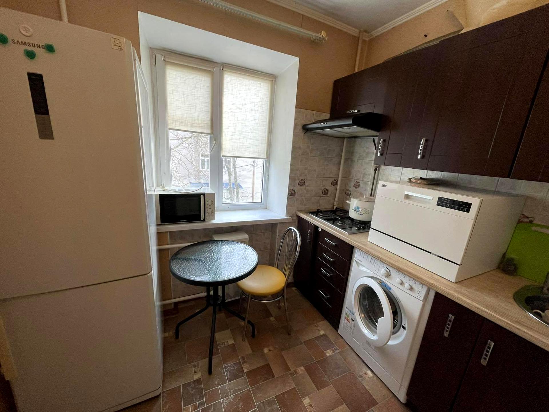 В квартире 2 комнаты, высота потолков 2.6 метра, Технологія будівництва - Цегляна, Тип будинку - Хрущівка. Есть газ, кухонная плита газовая. Есть балкон. Дом построен в 1963 году. Общее состояние квартиры - С ремонтом. Горячая вода - электрический бойлер. Количество санузлов: 1. Интернет проводной (кабельный). Тип кухни - отдельная кухня. Количество спален: 2. Без комиссии