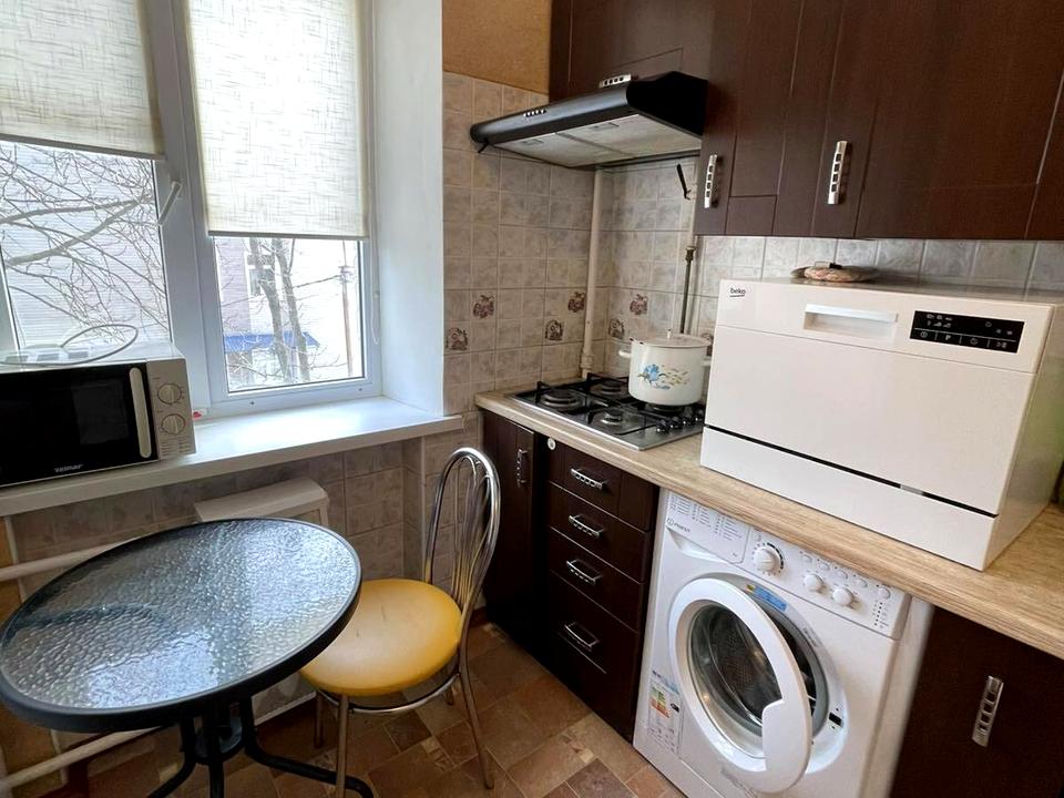 Обладнана меблями та всією необхідною побутовою технікою: двоспальне ліжко, розкладний диван, шафа- купе , комод. холодильник, газ плита, пральна машина, посудомийка, бойлер, мікрохвильовка, електрочайник .