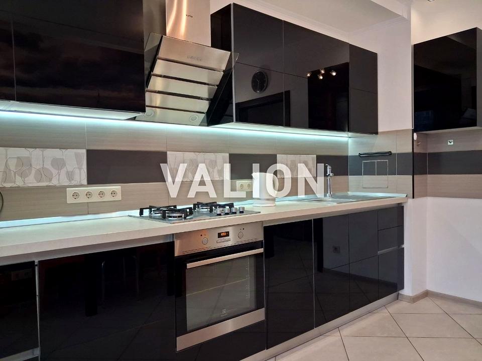 В кімнаті розкладний двоспальний диван, вбудована шафа, стелаж та кондиціонер. Вбудована кухня, обідній стіл, 2 стільця та техніка (газова варильна поверхня та духова шафа Electrolux, посудомийна машина, пральна машина, холодильник в коридорі, витяжка, телевізор). А також з кухні є вихід на просторий засклений балкон з вмонтованою сушкою для білизни. Великий суміжний санвузол з ванною, бойлер на 50 літрів.